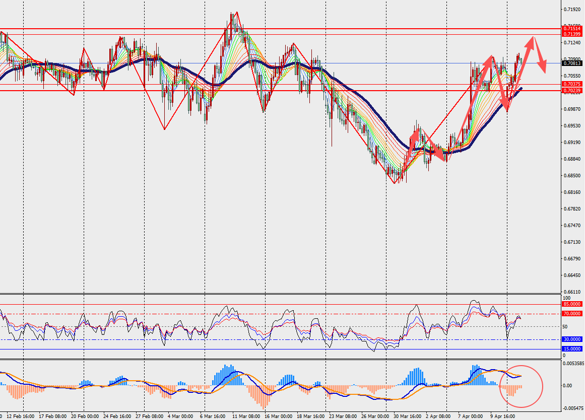第一阻力位:0.7130                        第一支撑位:0.7040