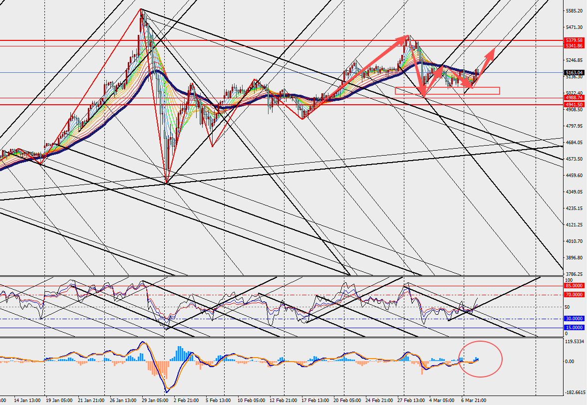 黄金H4级别震荡反弹,MACD双线和量能柱在零轴上方扩张。短期内,黄金可能会在5000美元附近震荡整理,既受到油价上涨带来的压制,也受到避险资金流入的支撑。对于投资者来说,当前的黄金市场处于多空博弈的关键时刻,需要密切关注油价变化以及全球经济和政治局势的演变。