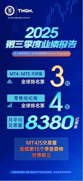 全球金融市场权威媒体 Finance Magnates于近期正式发布了《2025年第三季度全球经纪商业绩报告》。在这份备受瞩目的行业风向标中,TMGM 再次以无可撼动的硬核实力,向全球市场交出了一份震撼业界的成绩单。