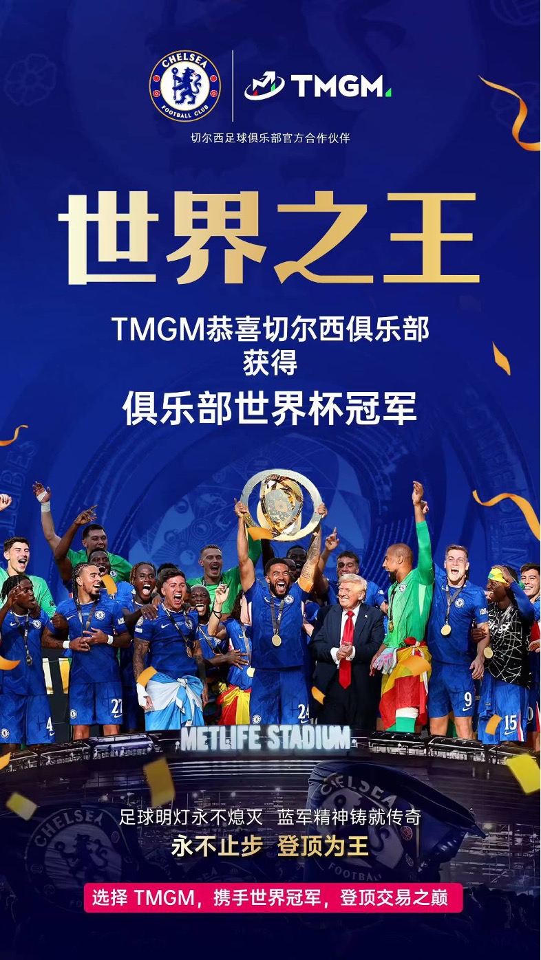 7月13日,TMGM 的合作伙伴、英超豪门切尔西足球俱乐部,荣耀加冕,获得俱乐部世界杯冠军,TMGM 与全球亿万球迷共庆胜利。