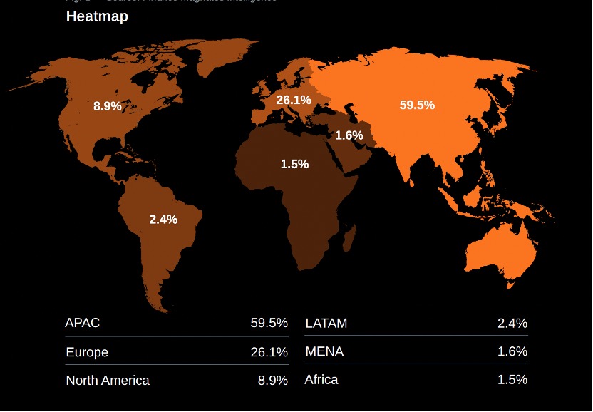 FX/CFD热力图显示,亚太地区贡献了全球经纪商网站流量的59.5% ,是当之无愧的全球交易热点区域。TMGM自创立之初便将亚太市场作为核心战略要地,凭借本土化的服务、多元化的产品以及对区域内投资者习惯的深刻理解,成功地抓住了这一历史性机遇。
