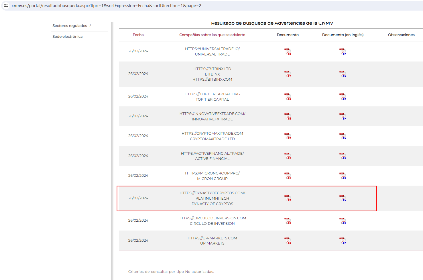 Moreover, Dynasty of Cryptos provides three addresses respectively in German and Switzerland. But our search for this company in the databases of the Federal Financial Supervisory Authority (BaFin) and the Swiss Financial Market Supervisory Authority (FINMA) didn't yield any matching results. This means it does not comply with the regulations in these countries either.