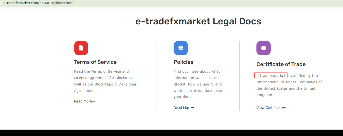 Thirdly, e tradefx asserts that it's regulated in the UK and the US. However, there's no evidence to suggest that it's registered with either the Financial Conduct Authority (FCA) in the UK or the National Futures Association (NFA) in the US. As for those links labeled "certificate", they are all dead.