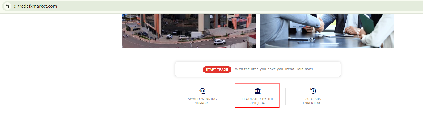 Firstly, it employs a website template frequently used by scammers. This template includes rudimentary elements and information about its regulatory status, some of which are incorrect, such as being regulated in the US by GSE (this is not a financial regulator in the US). As per our investigation, all the regulatory information provided was baseless, and e tradefx is no exception.