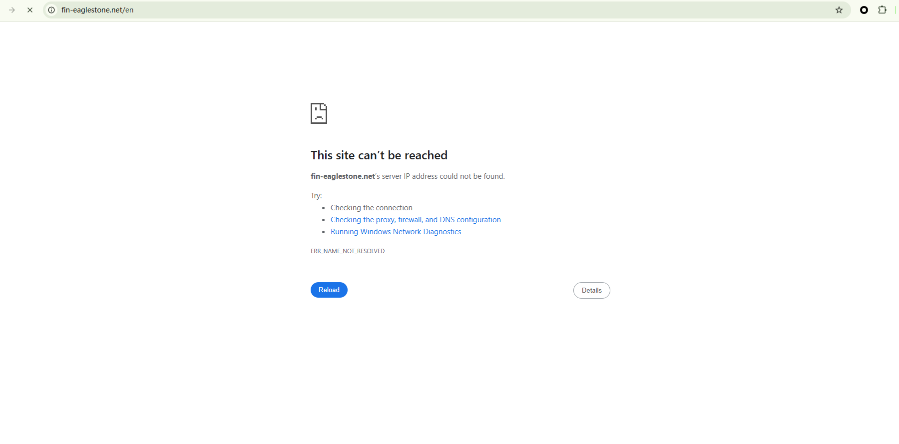 BrokersView found that the domain "https://fin-eaglestone.net/en" is currently inaccessible. This is widely regarded as a significant red flag, as the suspension of a broker's website often points to underlying regulatory or operational issues.