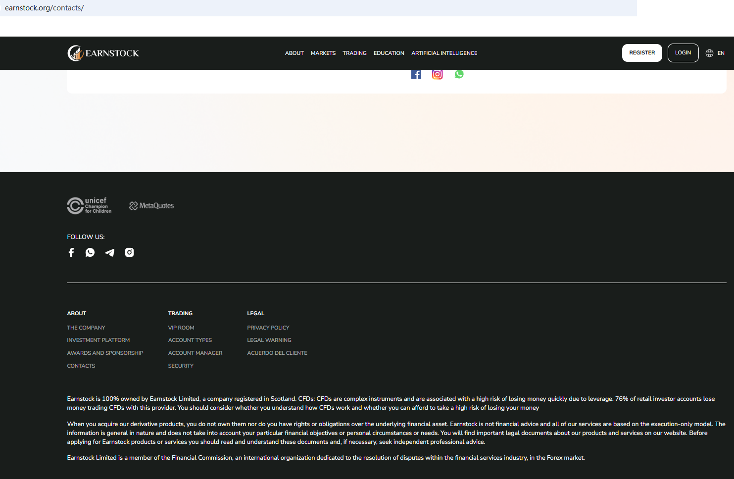 According to its website, while it claims to be a reputable company and be regulated by top global regulators, it doesn't display any detailed regulatory documentation on its website. Even more ridiculous, the Financial Conduct Authority (FCA) issued a warning regarding EarnStock, suspecting that this company may be offering financial services or products without the necessary authorization.
