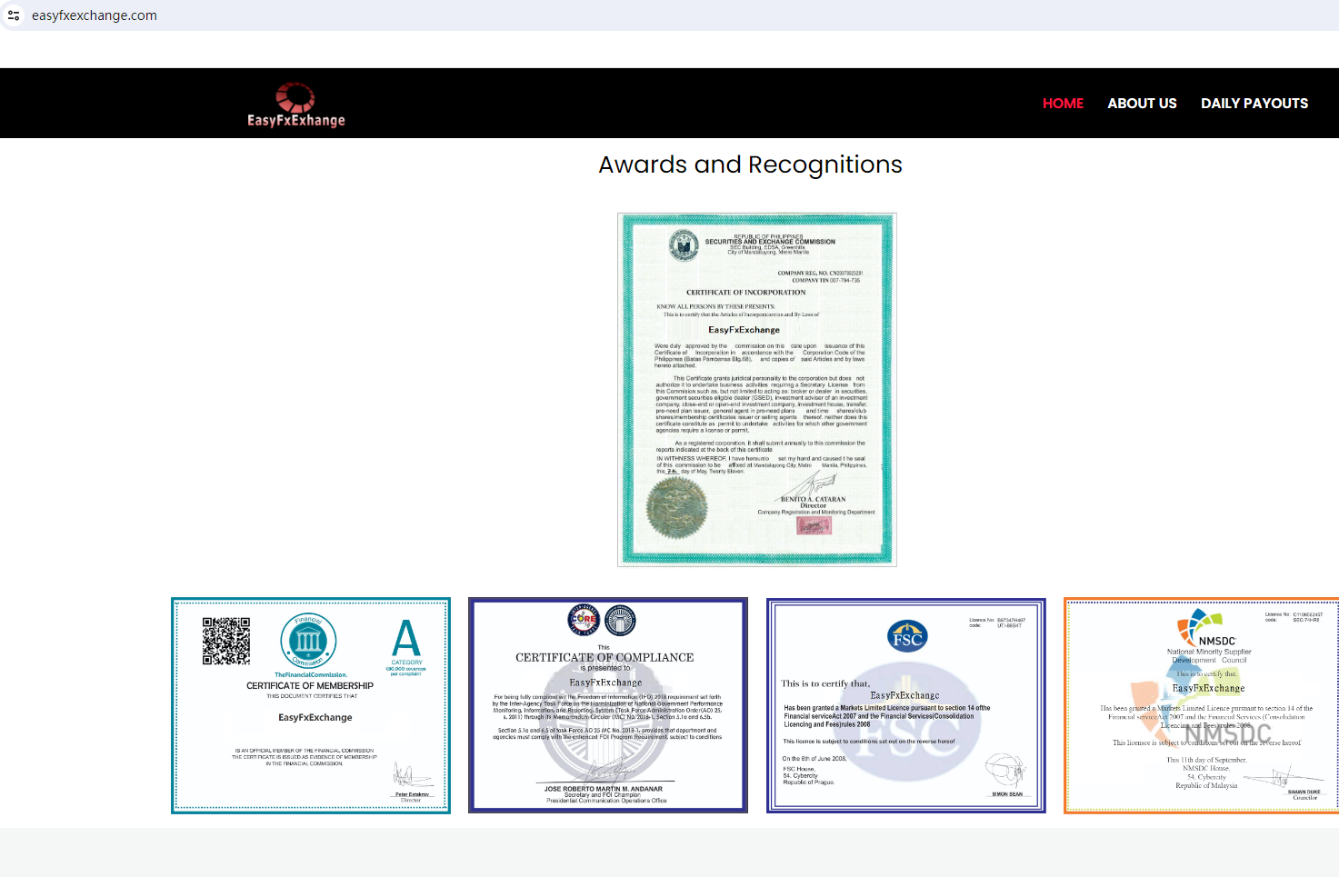 The truth is that EasyFxExchange is not regulated by any regulators. Letting it hold or control investors' money is unsafe, and the money can not be protected by any laws.
