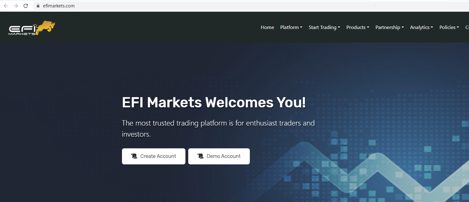 In essence, EFI Markets is not regulated by any governing body. Entrusting this broker with investors' funds is highly risky, as there are no legal protections in place to safeguard the funds. It is unequivocally a scam.