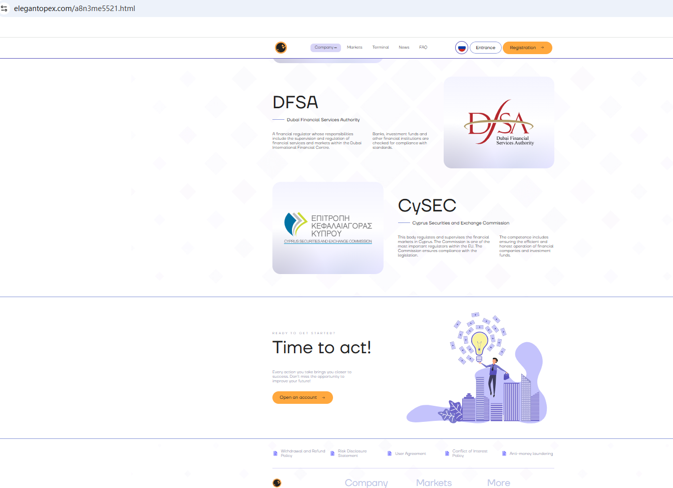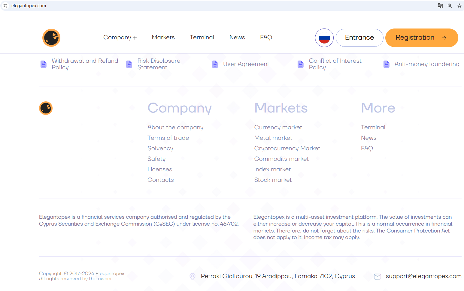 In addition, we found that the Cyprus Securities and Exchange Commission (CySEC) issued a warning against Elegantopex, believing this company might be providing financial services or products without authorisation.