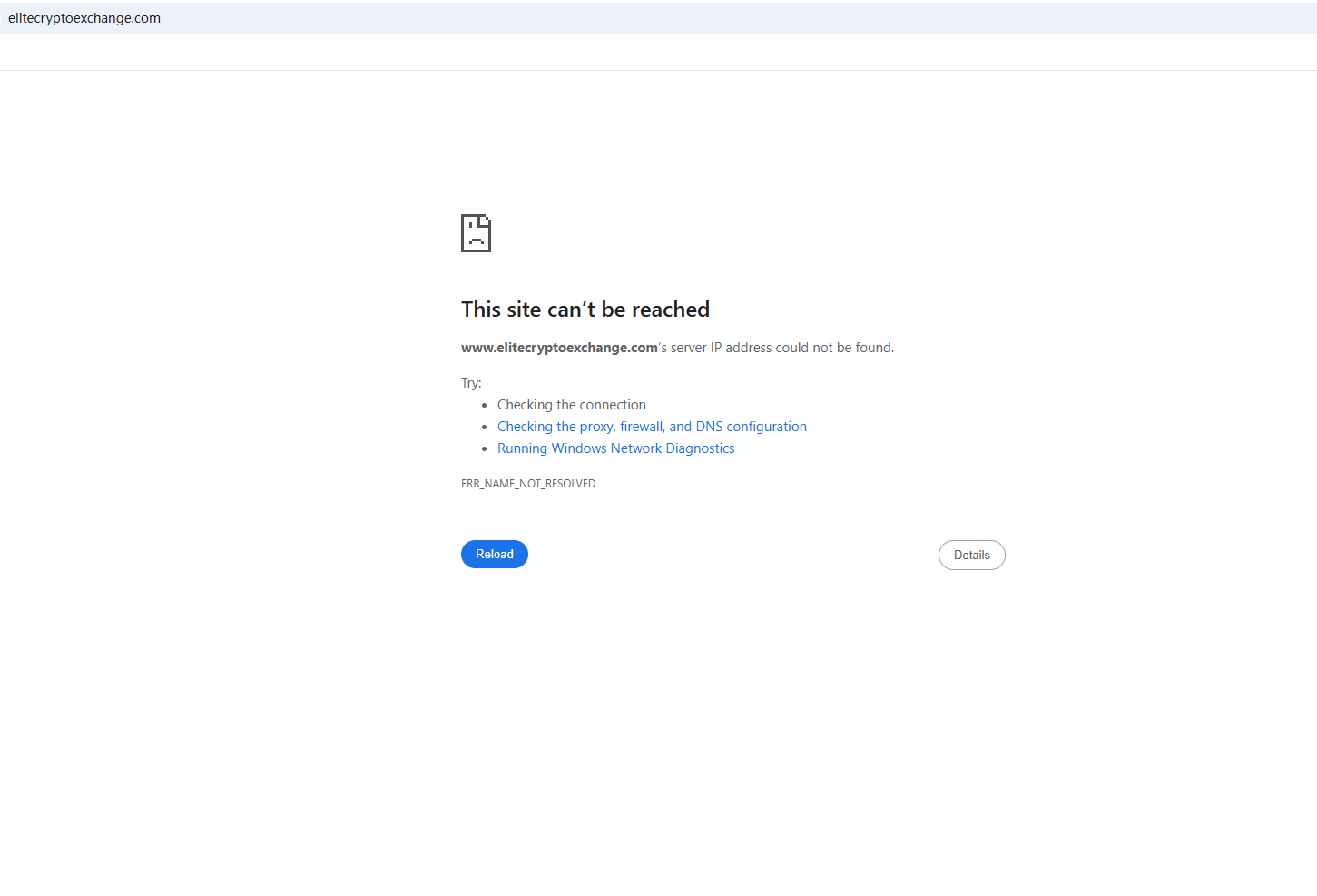 ELITE CRYPTO EXCHANGE fails to disclose any regulatory information, a significant scam indicator.