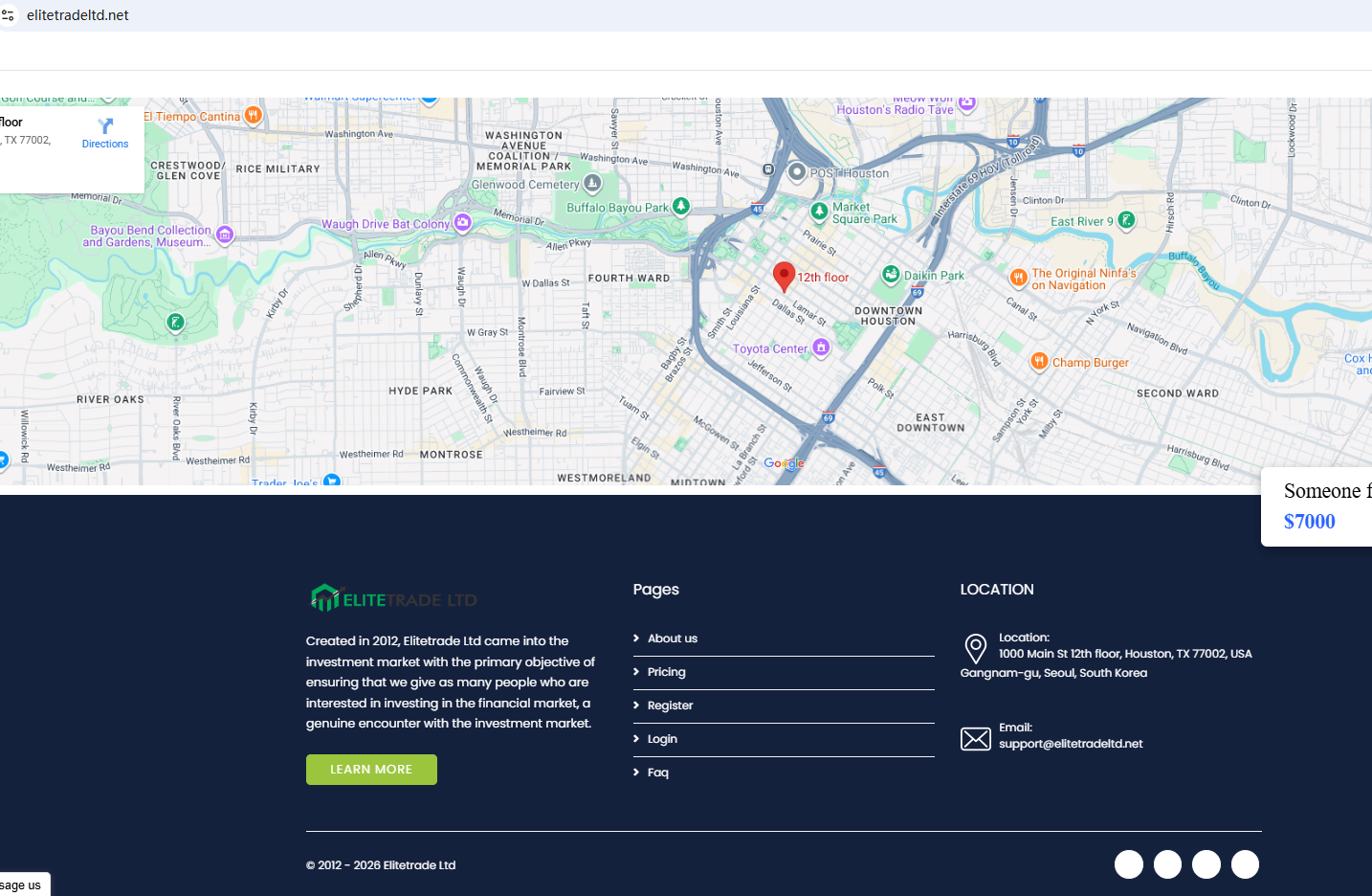 On Jan 5, 2026, the Financial Conduct Authority (FCA) issued a warning regarding ELITETRADE LTD, suspecting that this company may be offering financial services or products without the necessary authorization. https://www.fca.org.uk/news/warnings/elitetrade-ltd