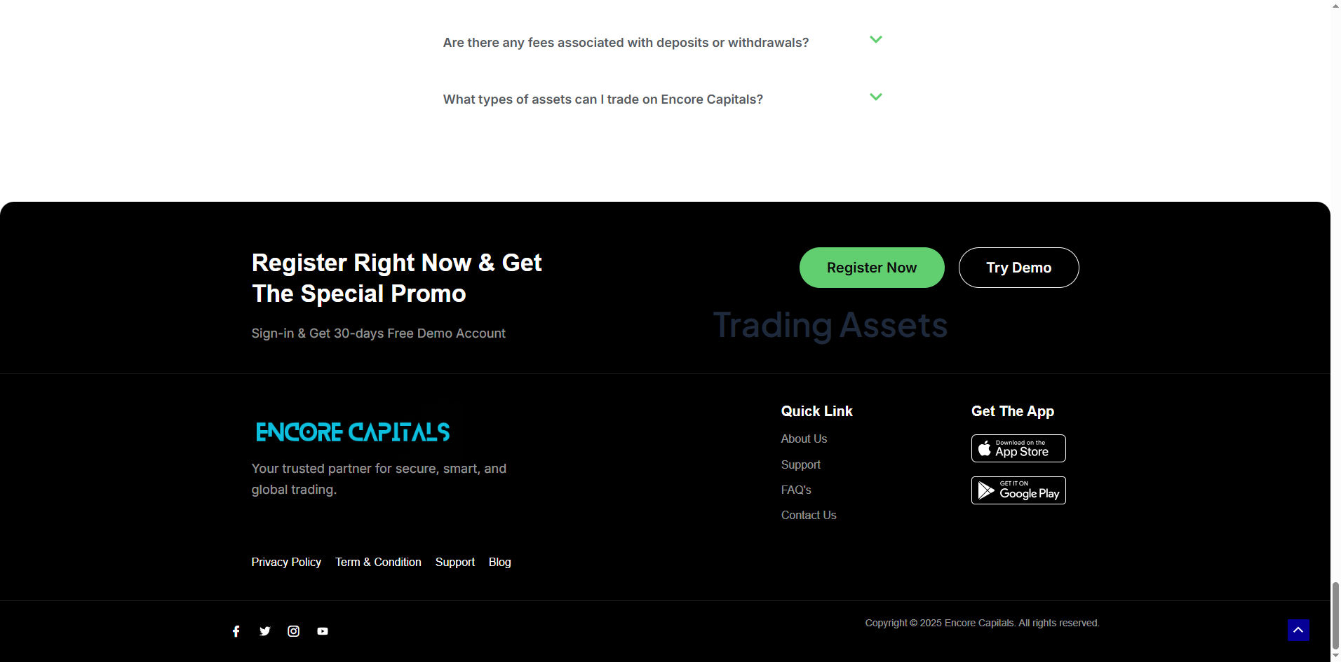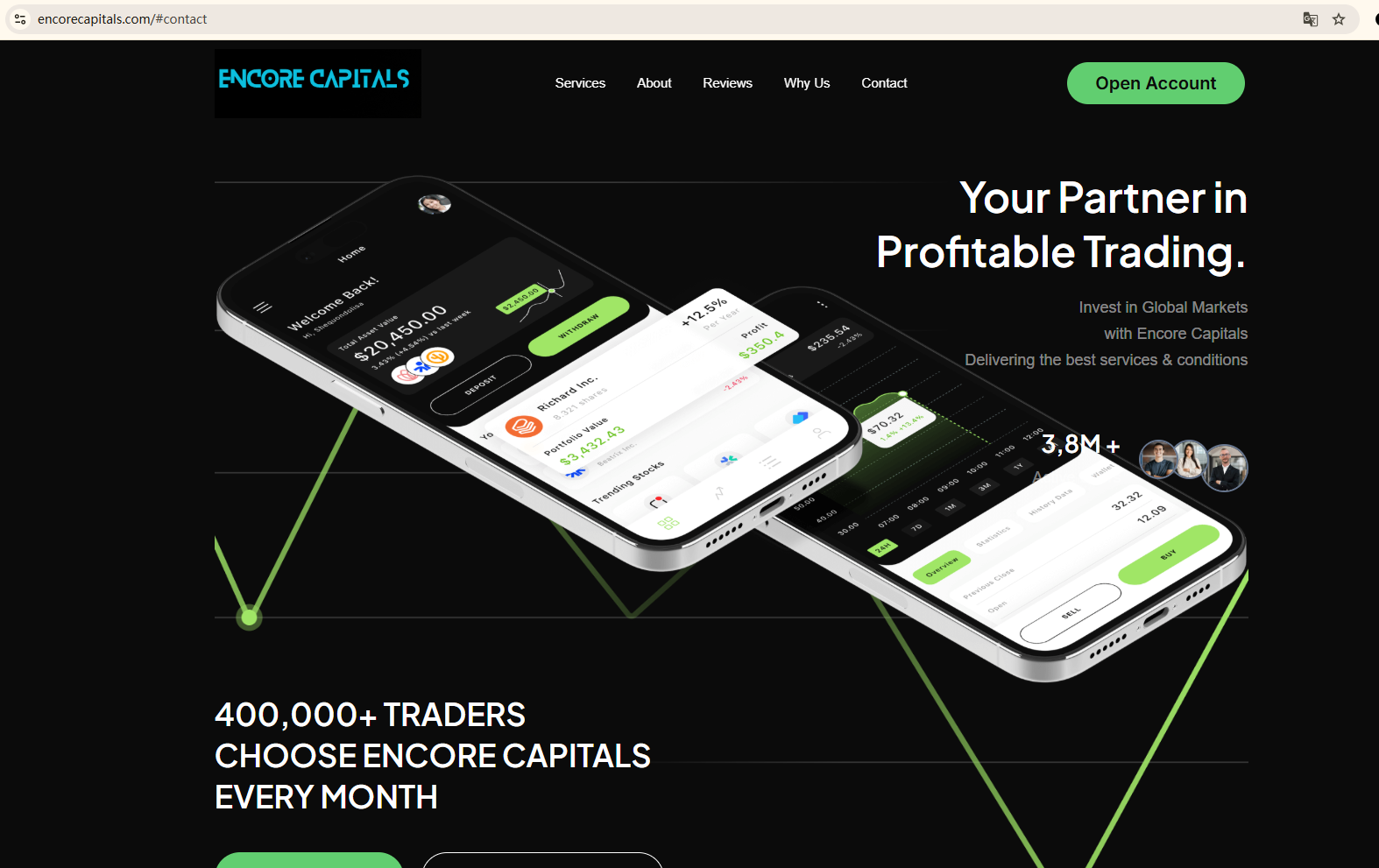 Encore Capitals provides no essential corporate information on its website, not even a legal entity name, registered address, physical location, or verifiable contact details, making it impossible to confirm its identity or regulatory status.