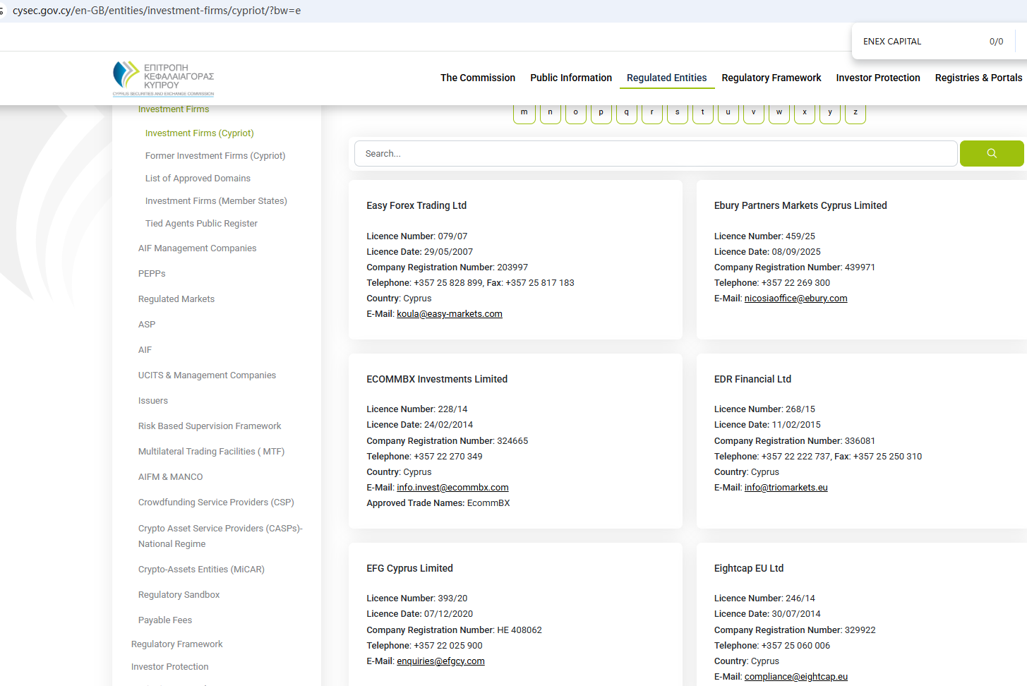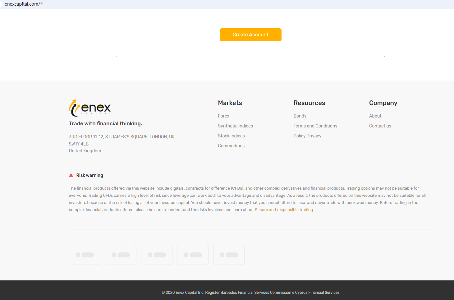 According to its website, it is regulated by both the Barbados Financial Services Commission (FSC) and the Cyprus Securities and Exchange Commission (CySEC). However, a search revealed no matching information with FSC and CySEC. Furthermore, the FCA issued a warning regarding ENEX CAPITAL, suspecting that this company may be offering financial services or products without the necessary authorization.