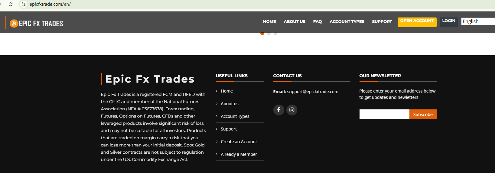 EPIC FX TRADES' website is filled with self-boasting claims. The broker promises unrealistic profits to lure unsuspecting investors and falsely claims to have membership of the National Futures Association (NFA) under number 03677678. However, verification suggests that this number does not exist on the NFA register. Additionally, the Financial Conduct Authority (FCA) has flagged EPIC FX TRADES as an unauthorized firm.