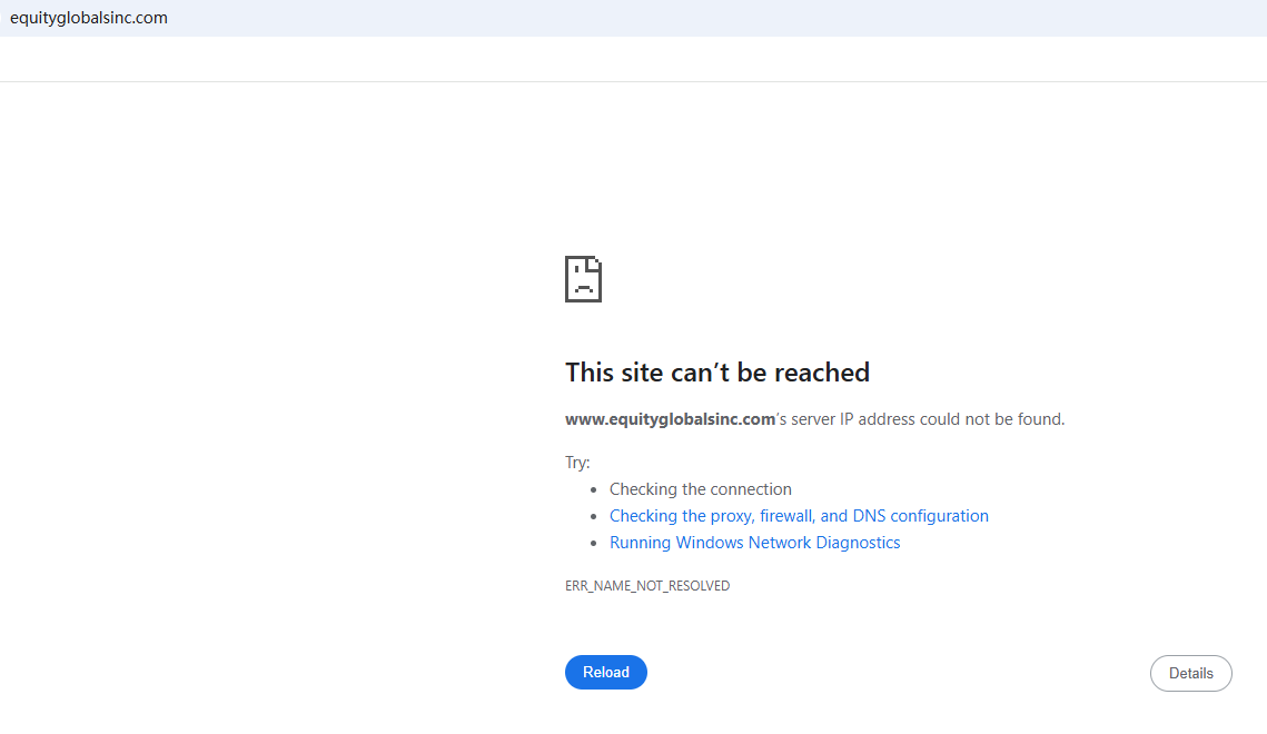 BrokersView found that the domain "https://www.equityglobalsinc.com/" is currently inaccessible. This is widely regarded as a significant red flag, as the suspension of a broker's website often points to underlying regulatory or operational issues.