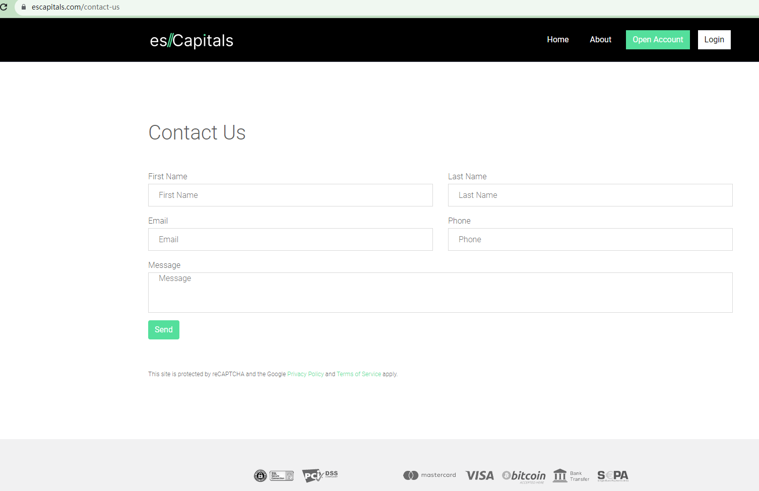 esCapitals fails to disclose vital information about its actual operator. Investors are only left with an email address and a Contact Us web form to reach out to its team. This absence of transparency is a strong scam indicator.