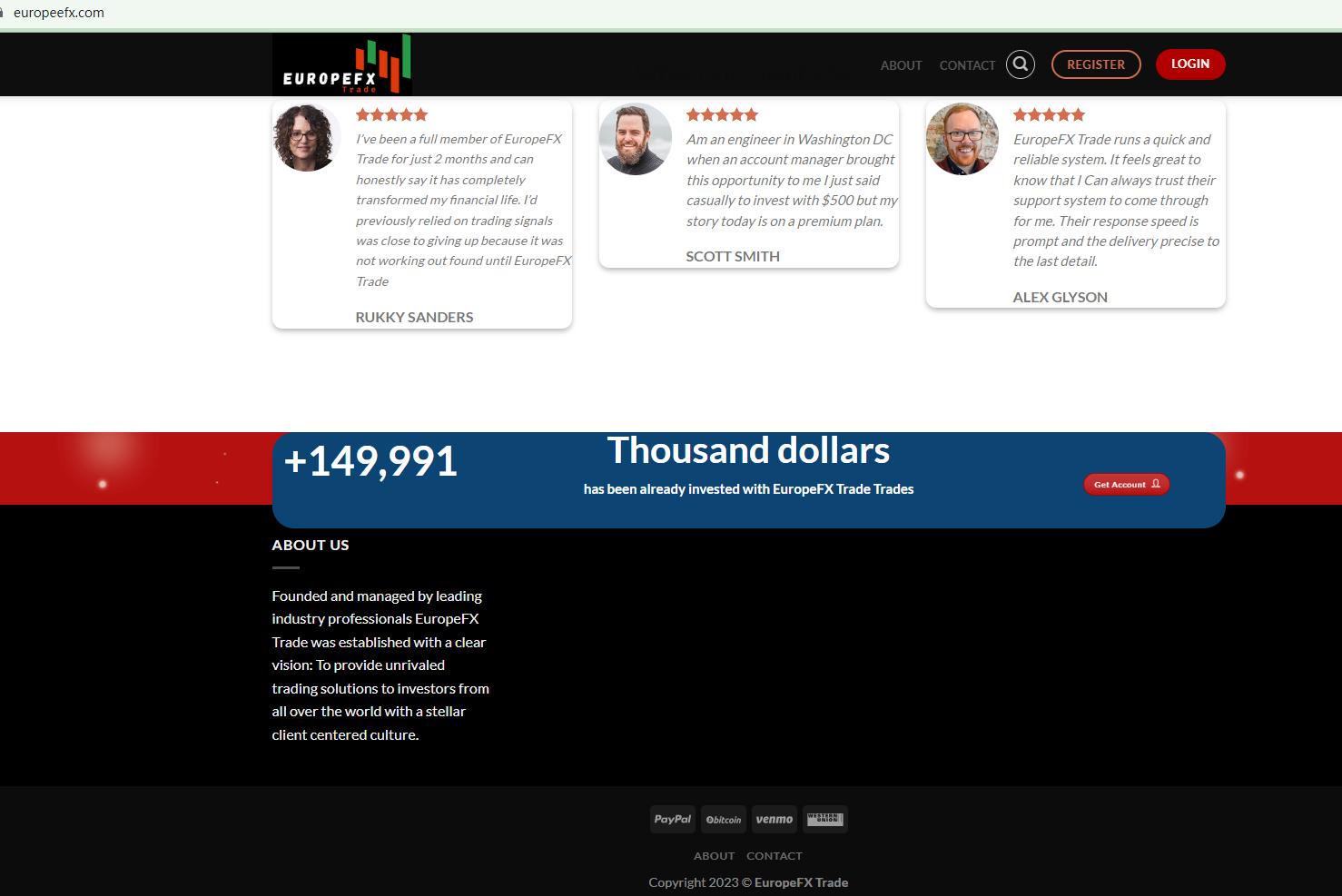 EuropeFx Trade hides the information of its actual operator, making customers unaware of its actual address, phone number and email address. They clearly do not want the public to know who they are. Regarding the glowing testimonials, they can be easily fabricated and have no value.