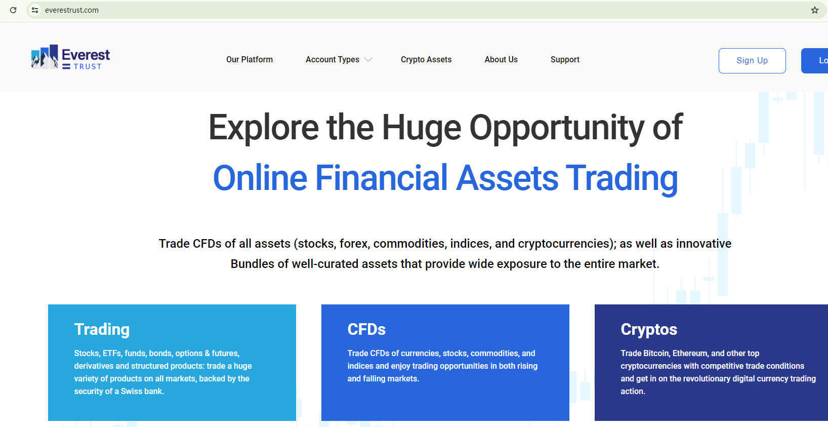 Everest Trust, despite its attempts to build credibility through exaggerated language, seems to be falling short in practice. The broker's website lacks any regulatory information that would validate its legitimacy, raising red flags about its operations.