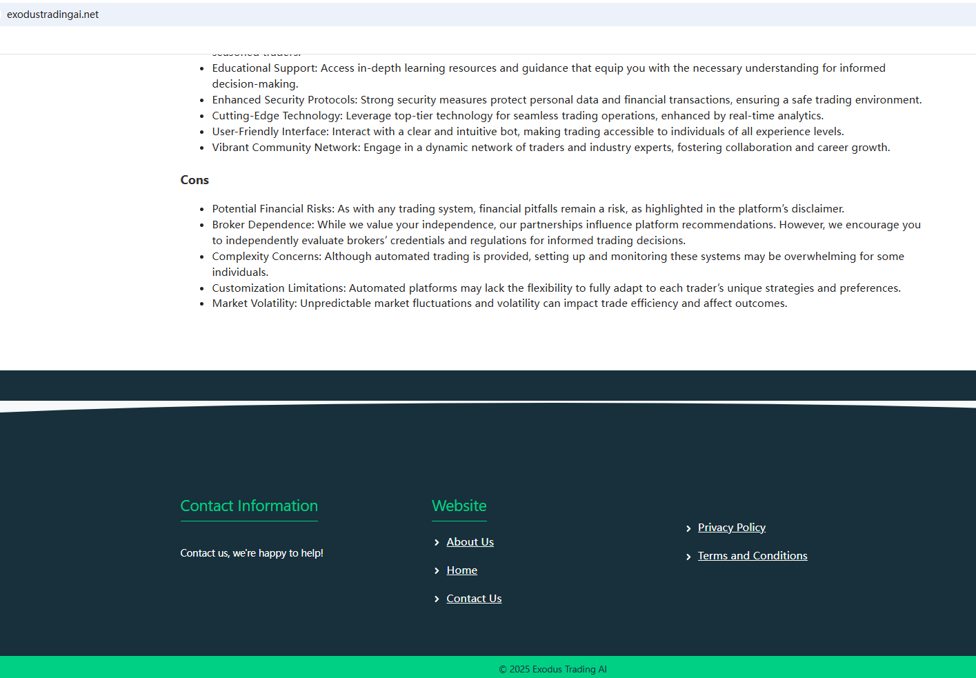 In essence, EXODUS TRADING AI is not regulated by any governing body. Entrusting it with investors' funds is highly risky, as there are no legal protections in place to safeguard the funds. EXODUS TRADING AI appears to be a scam.