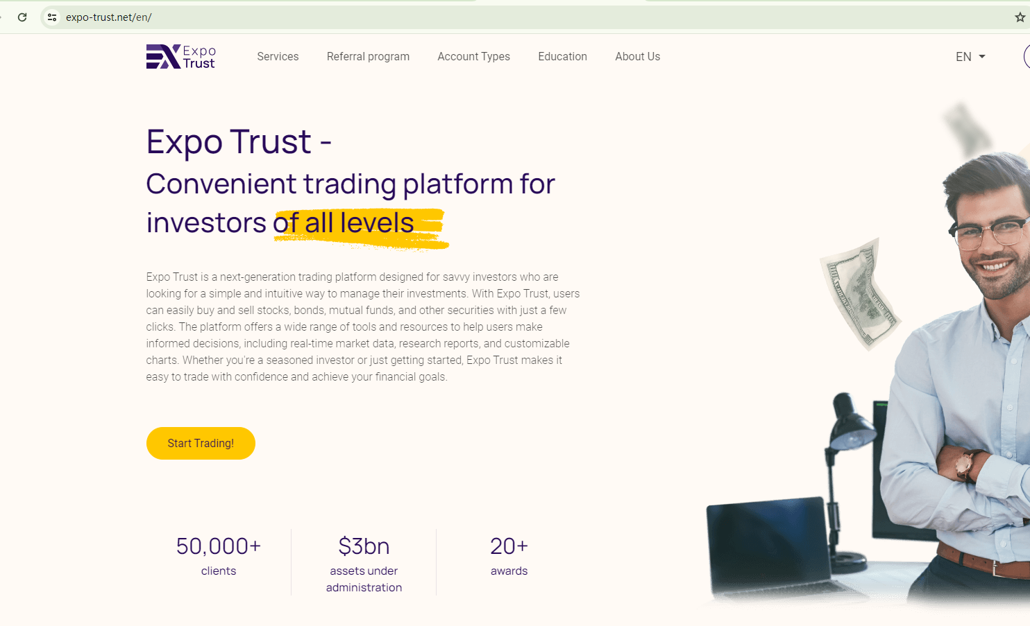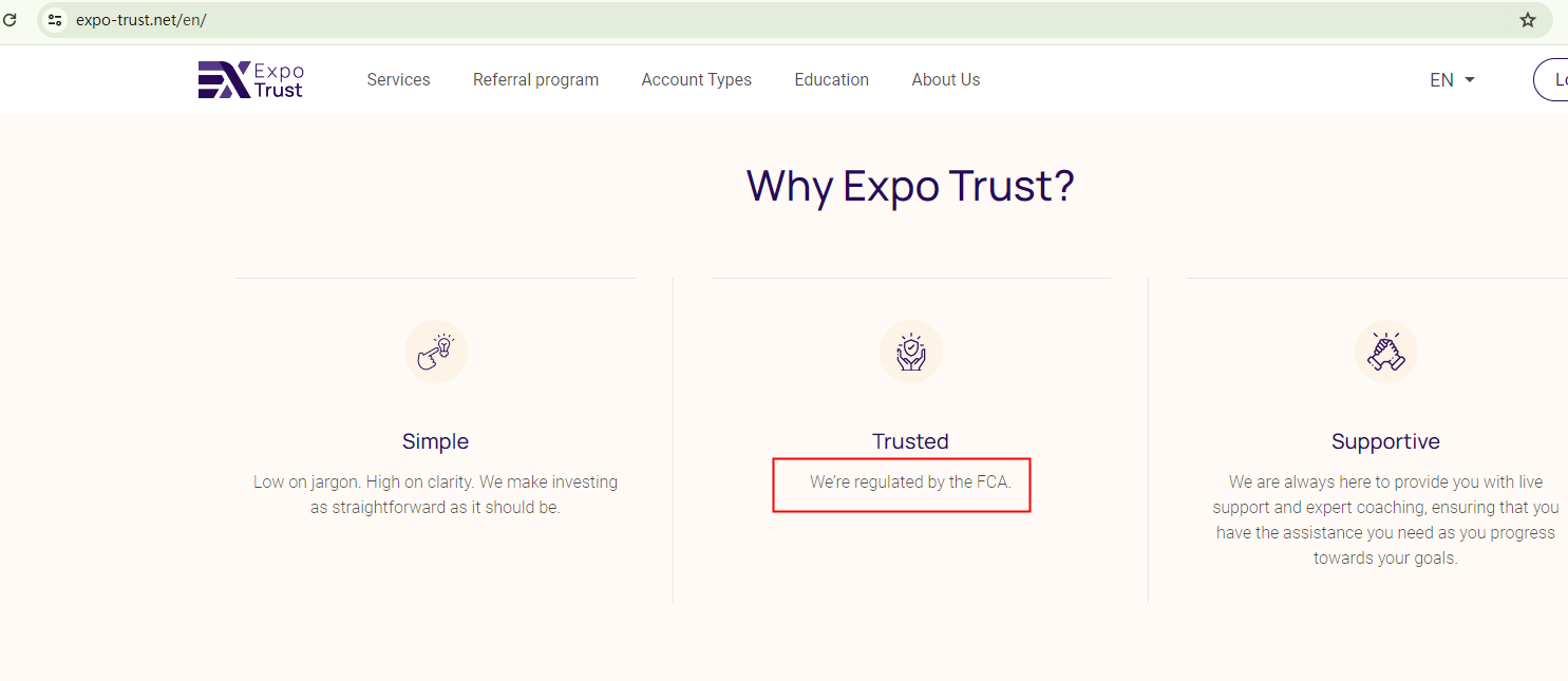 Expo Trust claims to be a trading platform regulated by the Financial Conduct Authority (FCA).