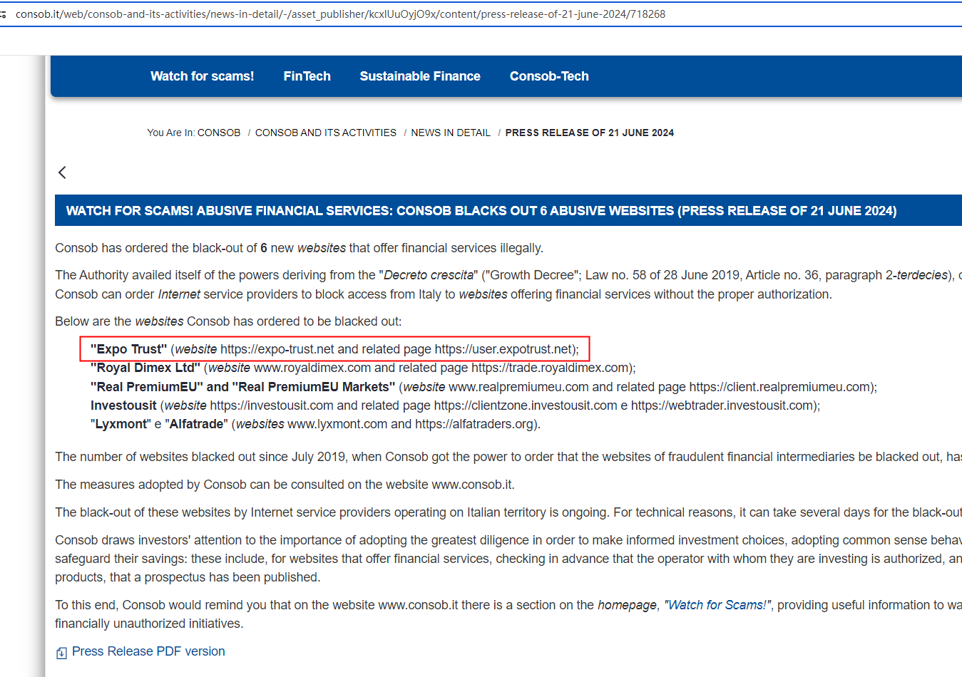In summary, Expo Trust is not regulated by any governing body. It is highly risky to entrust them with investors' funds due to the absence of legal protections to safeguard these funds. Therefore, Expo Trust appears to be fraudulent.