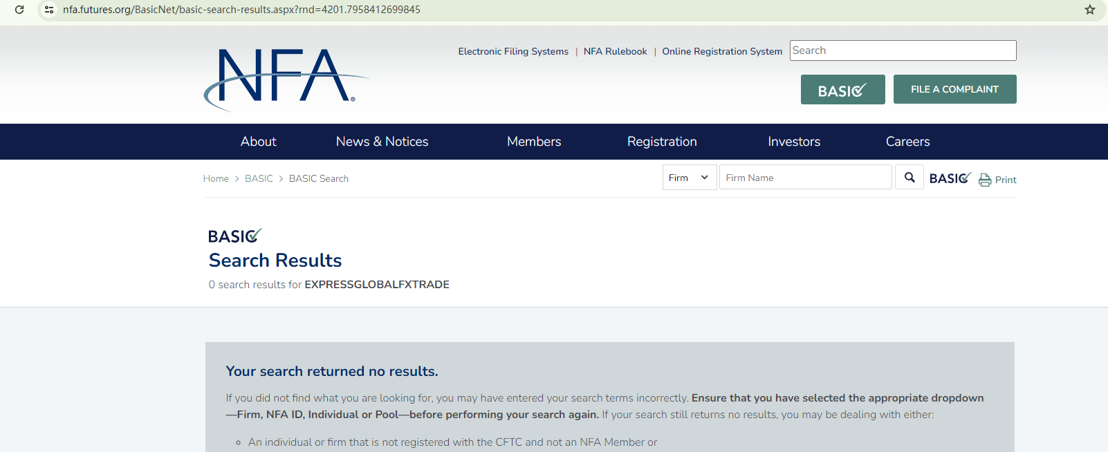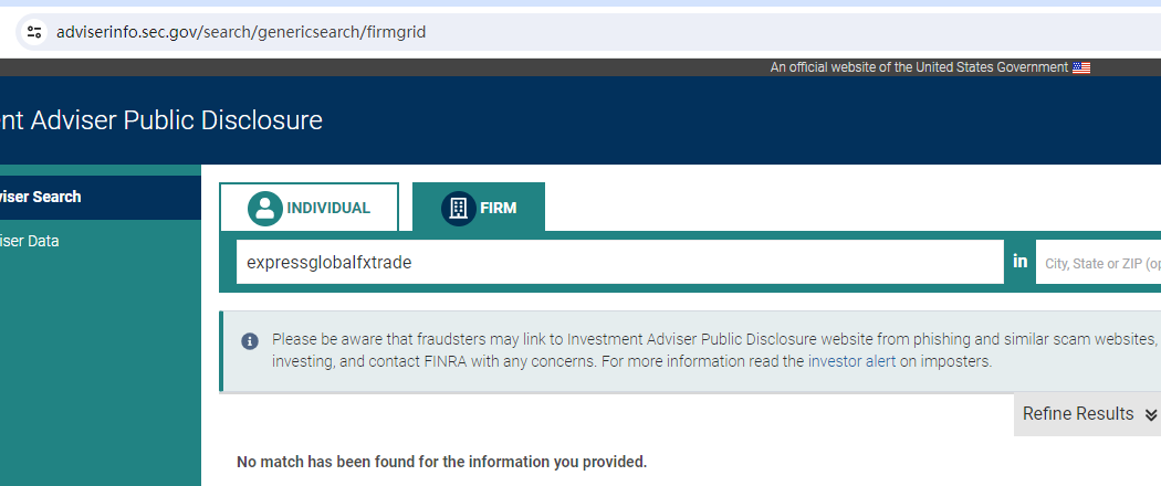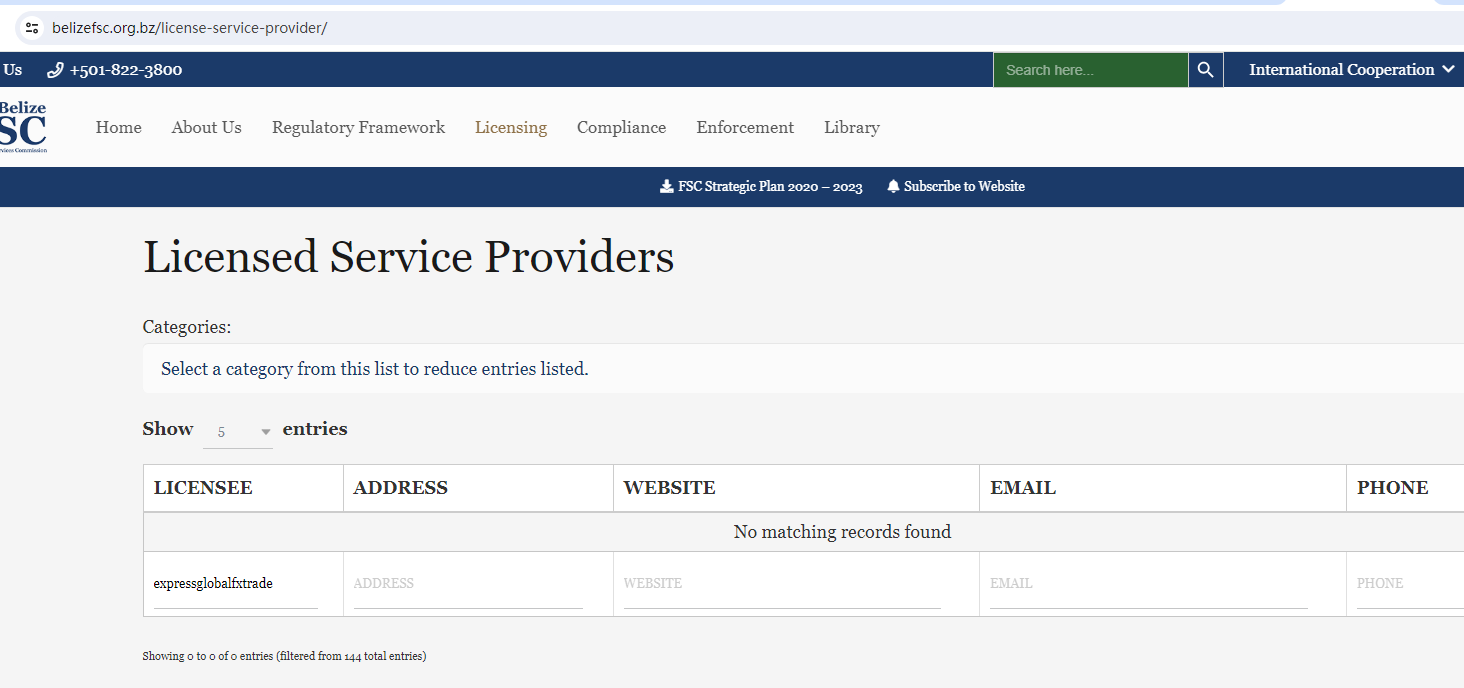 expressglobalfxtrade claims to be regulated by the U.S. Securities and Exchange Commission, Commodity Futures Trading Commission (CFTC), Financial Services Commission of Belize (FSC) and Cyprus Securities and Exchange Commission (CySEC).We searched these regulators but found no matching results.The truth is that expressglobalfxtrade is not under valid regulation by any regulators to do forex. Investors' funds in this broker are unsafe and cannot be protected by any law.expressglobalfxtrade is a scam.