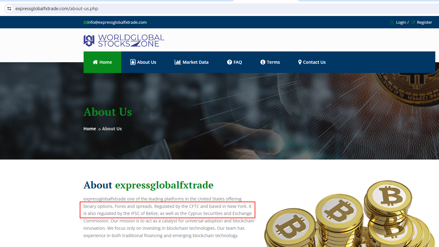 expressglobalfxtrade claims to be regulated by the U.S. Securities and Exchange Commission, Commodity Futures Trading Commission (CFTC), Financial Services Commission of Belize (FSC) and Cyprus Securities and Exchange Commission (CySEC).