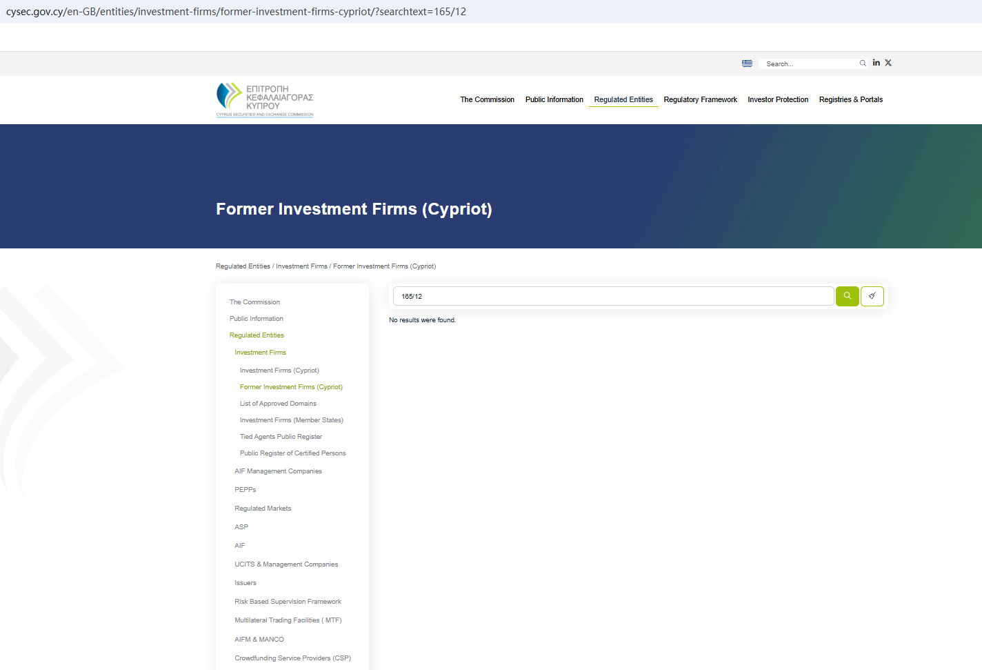 According to its website, it claims to be regulated by the Cyprus Securities and Exchange Commission (CySEC). Upon investigation, no matching information was found in the CySEC.