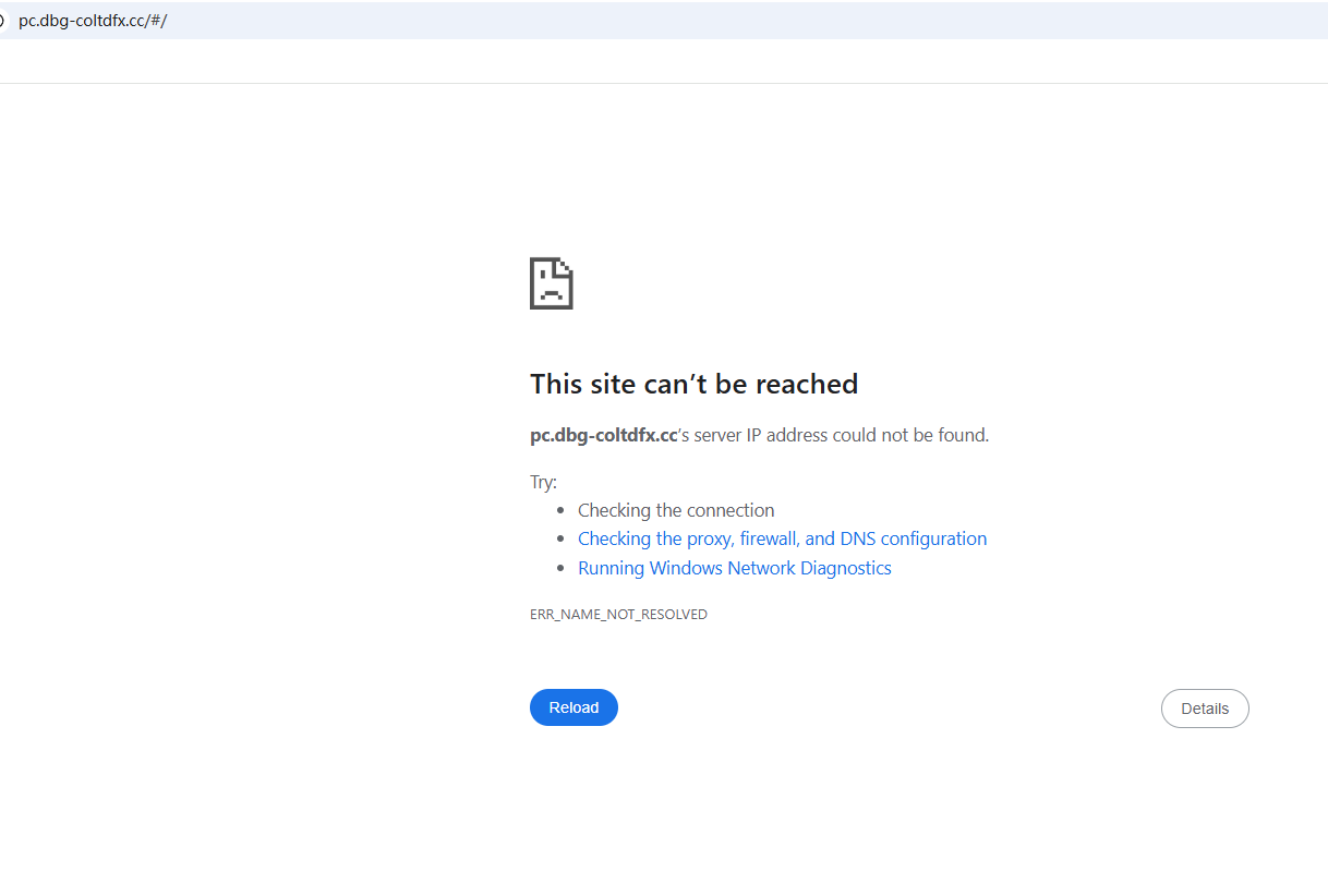 BrokersView found that the domains "https://pc.dbg-coltdfx.cc/#/; https://pc.dbg-coltdfx.cc/#/" are currently inaccessible. This is widely regarded as a significant red flag, as the suspension of a broker's website often points to underlying regulatory or operational issues.
