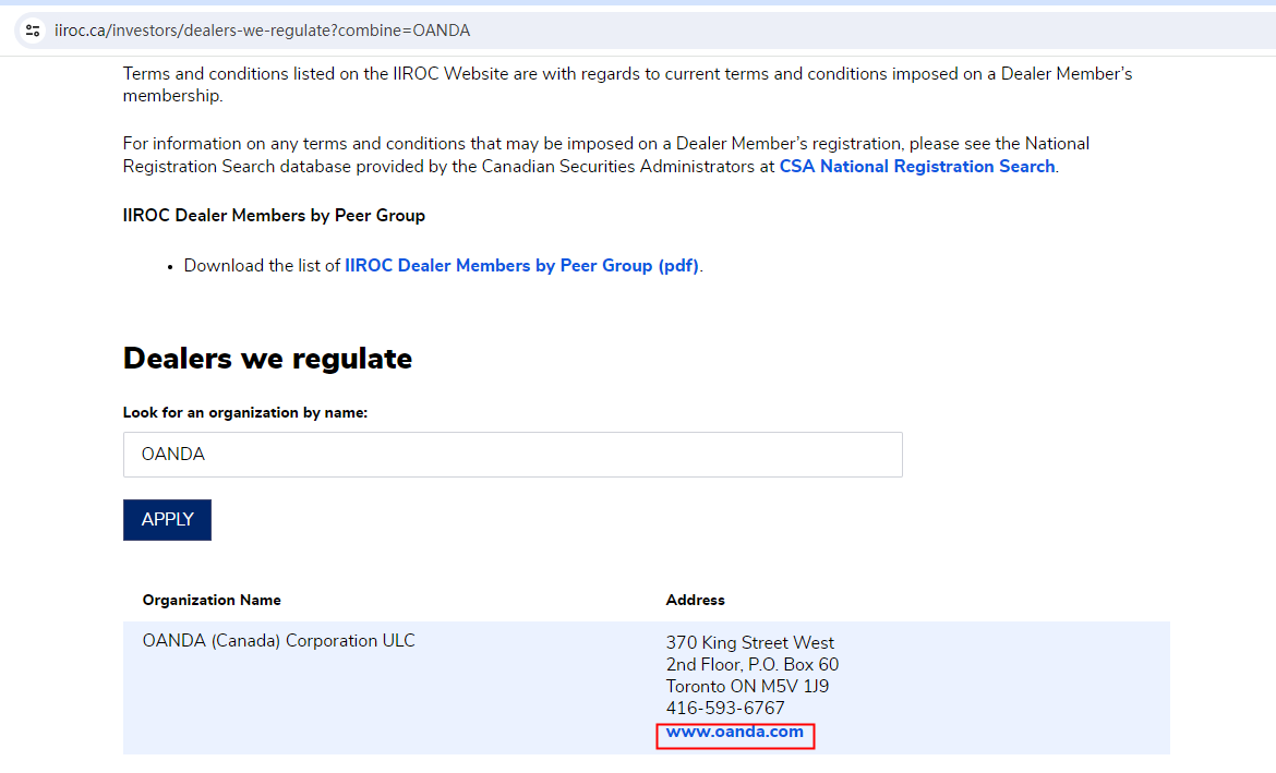 Fake OANDA claims to be obtained licenses in the U.S, Canada, and Australia, we have found three OANDA-compliant companies in the U.S. National Futures Association (NFA), the Investment Industry Regulatory Organization of Canada (IIROC), and the Australian Securities and Investments Commission (ASIC), namely OANDA CORPORATION, OANDA (Canada) Corporation ULC, and OANDA AUSTRALIA PTY LTD, the registration website with IIROC is https://www.oanda.com/. The above is the regulatory information of OANDA, a compliant broker, which has nothing to do with Fake OANDA.