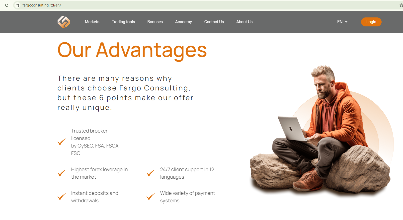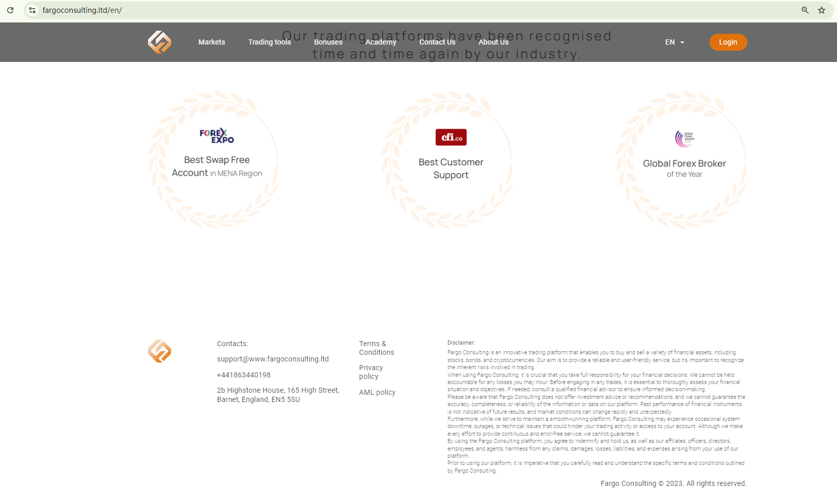 Fargo Consulting simply lists names of different financial regulators to appear legitimate. However, it is a common tactic used by fraudsters. The company doesn't provide any licensing details such as the license numbers for verification. This lack of essential information is a scam indicator.Furthermore, while Fargo Consulting is allegedly located in the UK, it has been warned by the Financial Conduct Authority (FCA) for the lack of the required authorization.In essence, Fargo Consulting is not regulated by any governing body. Entrusting it with investors' funds is highly risky, as there are no legal protections in place to safeguard the funds.Fargo Consulting appears to be a scam.