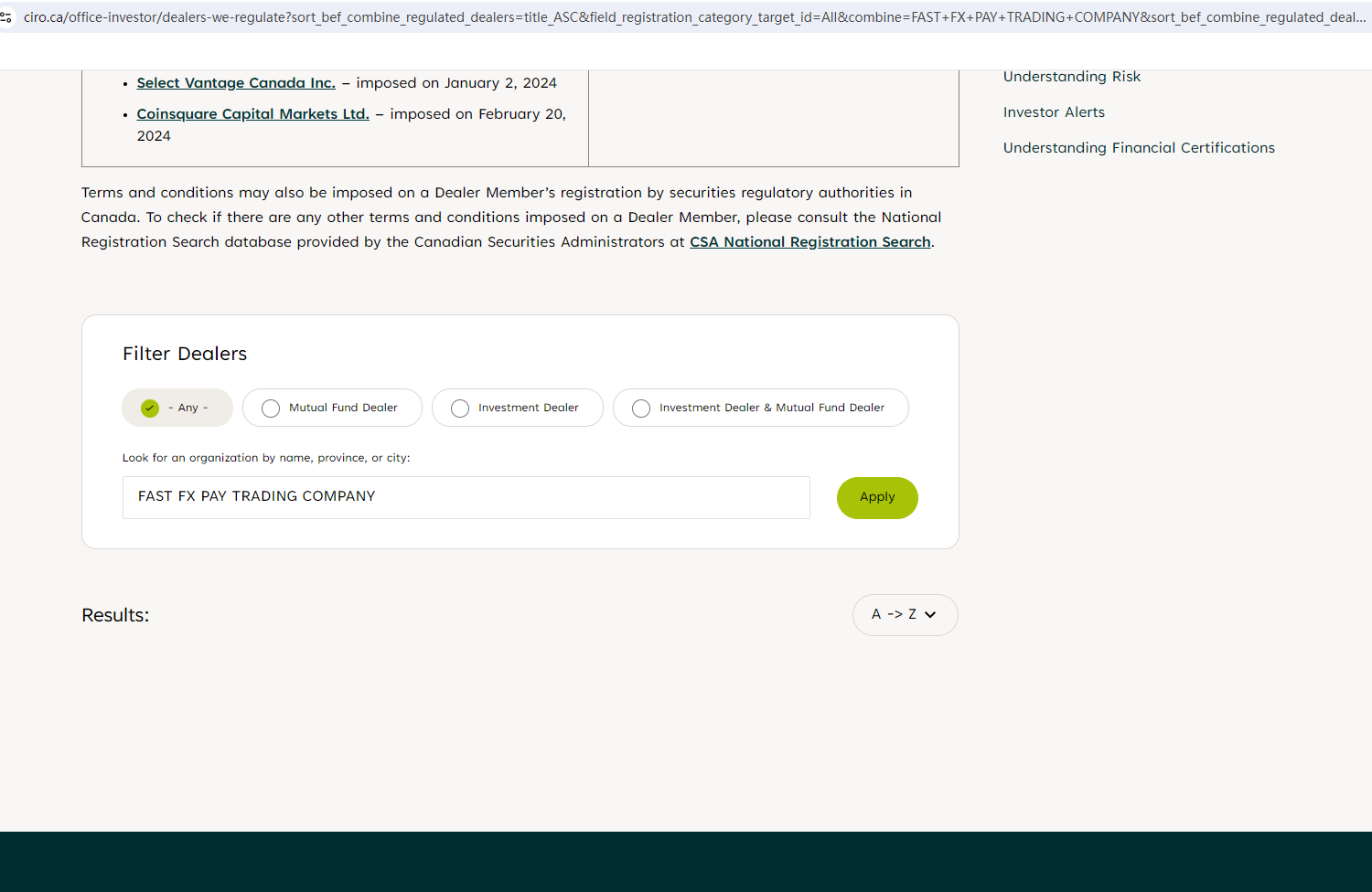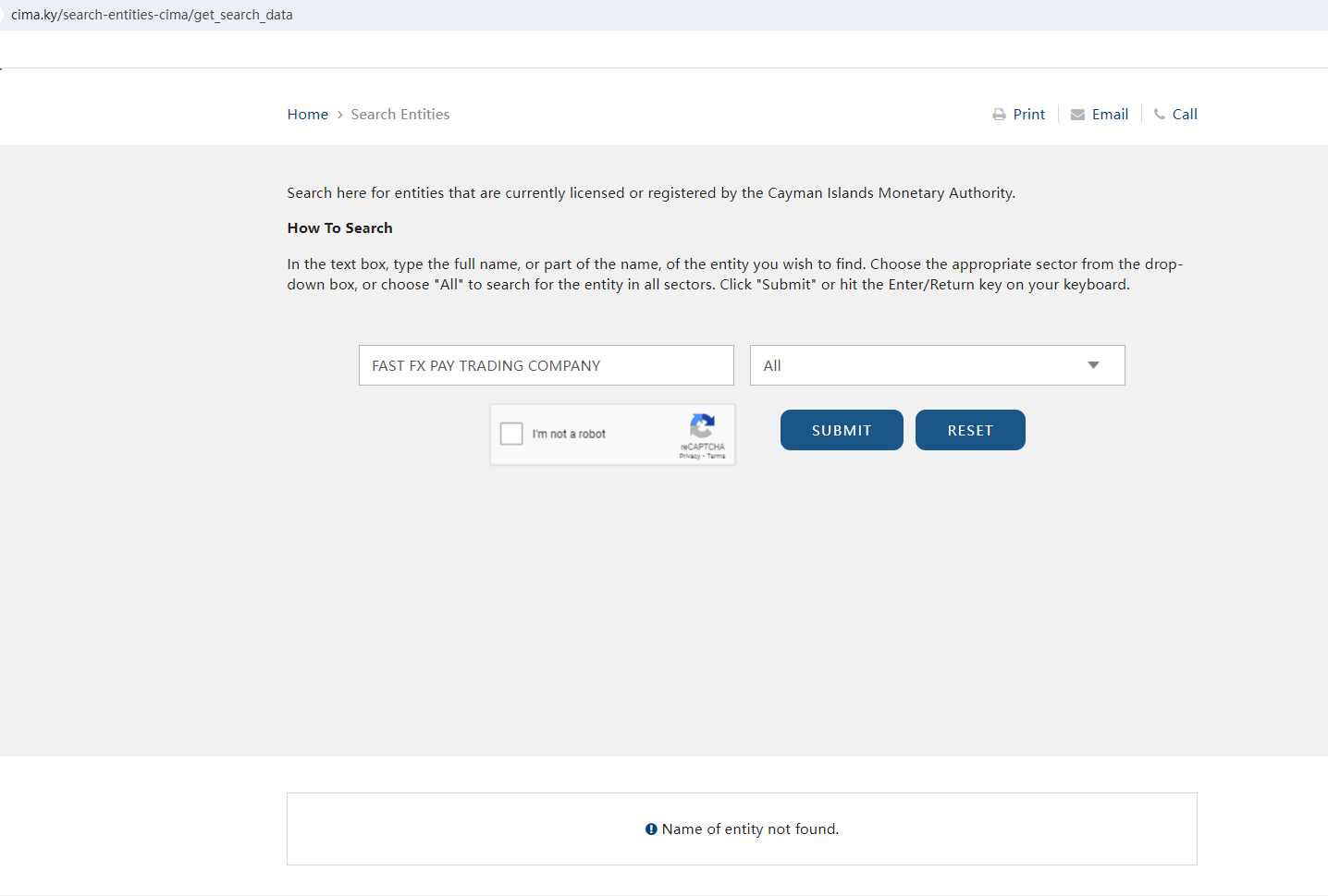 According to its website, it offers multiple addresses. Upon investigation, no matching information was found in the Cayman Islands Monetary Authority (CIMA), the Seychelles Financial Services Authority (FSA Seychelles), and the Investment Industry Regulatory Organization of Canada (IIROC).In addition, the Financial Conduct Authority (FCA) issued a warning against FAST FX PAY TRADING COMPANY, believing this company might be providing financial services or products without proper authorization in the UK.In essence, FAST FX PAY TRADING COMPANY is not regulated by any governing body. Entrusting it with investors' funds is highly risky, as there are no legal protections in place to safeguard the funds.FAST FX PAY TRADING COMPANY appears to be a scam.