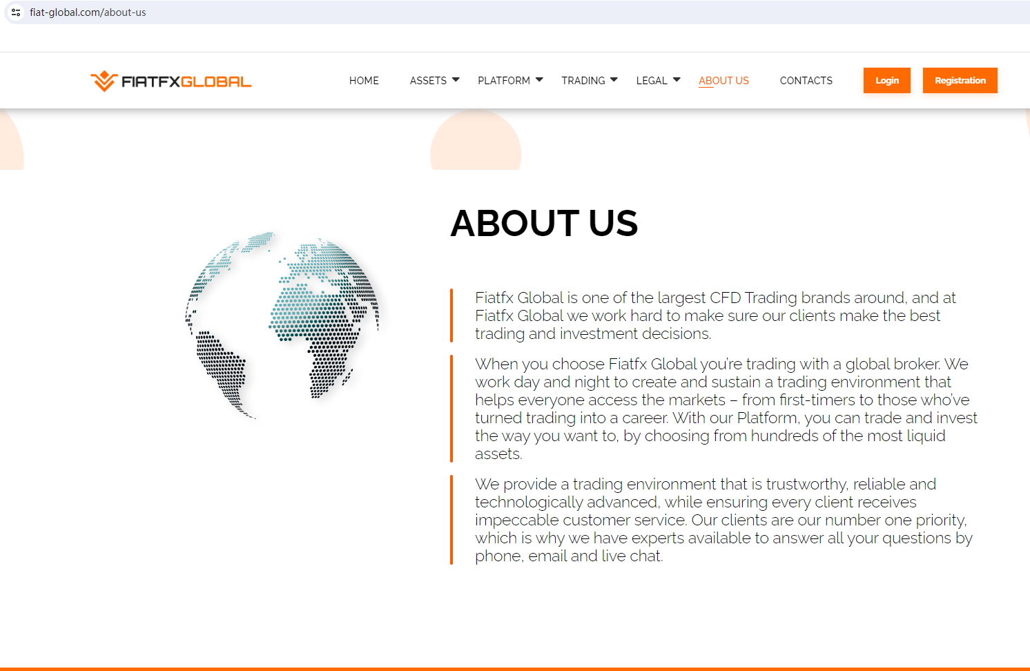 According to its website, Fiatfx Global claims to be a reliable company without presenting any information about its regulation or contact. The lack of such important information may be a distinct signal of an unlicensed broker, as regulated companies always present their accreditations and licenses in a prominent position. It is a red flag. In addition, we noticed that its telephone area code is the UK area code +44. Upon investigation, no matching information was found in the Financial Conduct Authority (FCA).The truth is that Fiatfx Global is not regulated by any regulators. Letting it hold or control investors' money is unsafe, and the money can not be protected by any laws.Fiatfx Global is a scam.