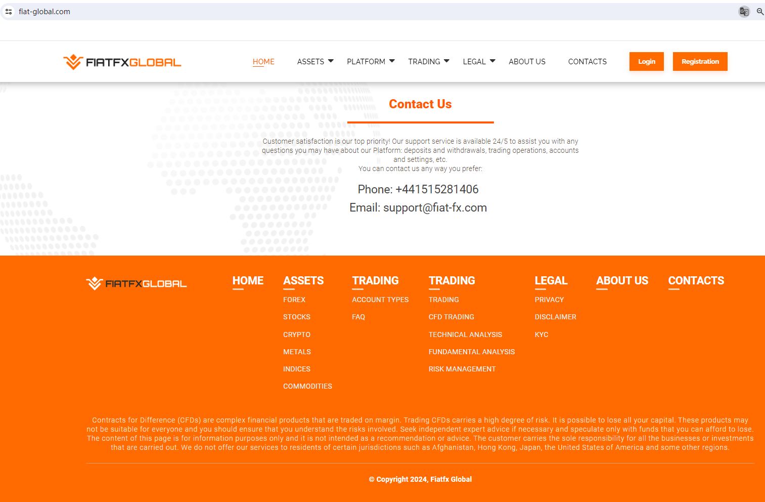 According to its website, Fiatfx Global claims to be a reliable company without presenting any information about its regulation or contact. The lack of such important information may be a distinct signal of an unlicensed broker, as regulated companies always present their accreditations and licenses in a prominent position. It is a red flag. In addition, we noticed that its telephone area code is the UK area code +44. Upon investigation, no matching information was found in the Financial Conduct Authority (FCA).