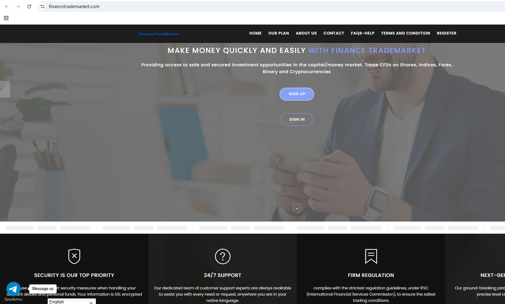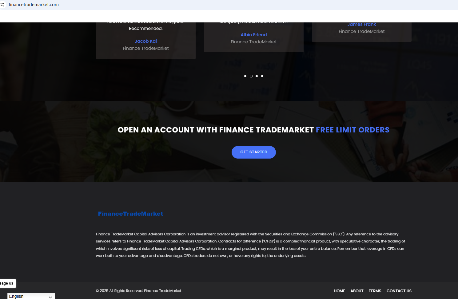 In fact, Financetrademarket is not regulated by any authority. Therefore, Financetrademarket is a scam.