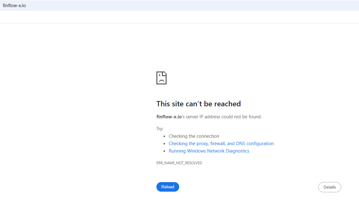 BrokersView found that the domains "https://finflow-x.co/; https://finflow-x.com/; https://finflow-x.io/" are currently inaccessible. This is widely regarded as a significant red flag, as the suspension of a broker's website often points to underlying regulatory or operational issues.