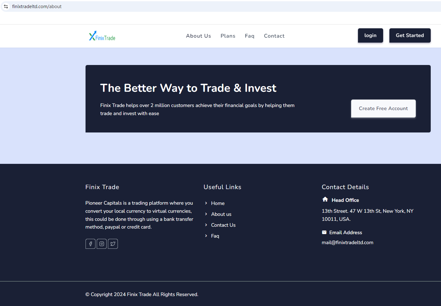 According to its website, it is located in the USA. Upon investigation, no matching information was found in the National Futures Association (NFA).In essence, Finix Trade is not regulated by any governing body. Entrusting it with investors' funds is highly risky, as there are no legal protections in place to safeguard the funds.Finix Trade appears to be a scam.