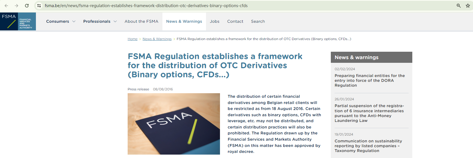 Upon examining its website, it becomes apparent that the broker alleges to be based in Belgium. This is a country that has unequivocally outlawed all leverage OTC derivatives, all binary options, and the sales methods by which they are distributed, due to their high-risk nature. Consequently, any brokers operating in this country are indisputably illegal.