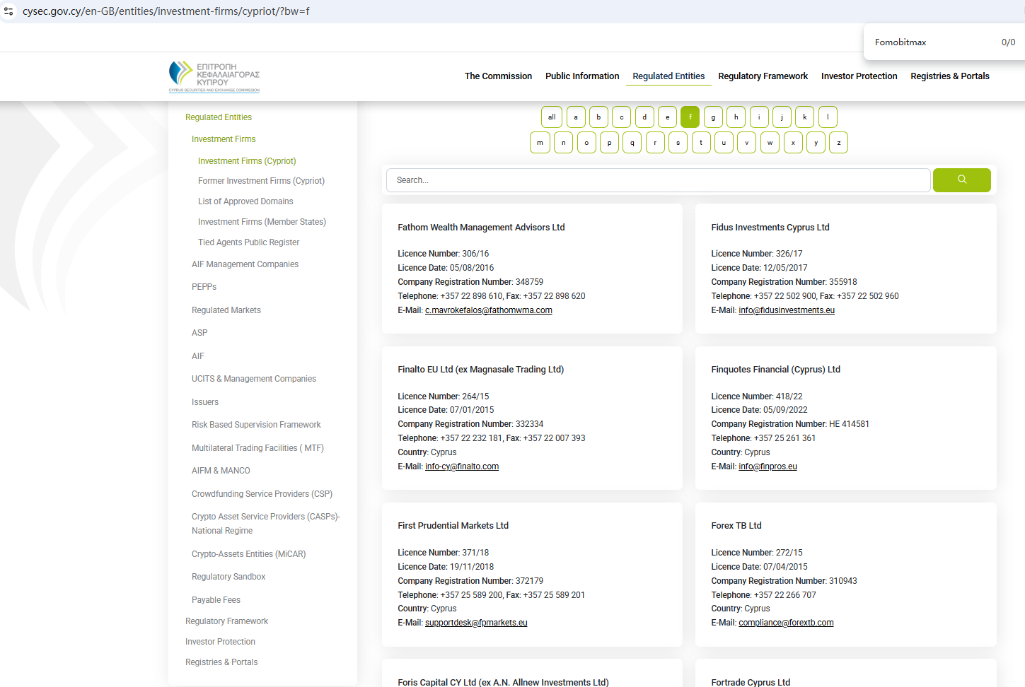 According to its website, it is regulated by both the Financial Conduct Authority (FCA) and the Cyprus Securities and Exchange Commission (CySEC). However, a search revealed no matching information with CySEC. Furthermore, the FCA issued a warning regarding Fomobitmax, suspecting that this company may be offering financial services or products without the necessary authorization.