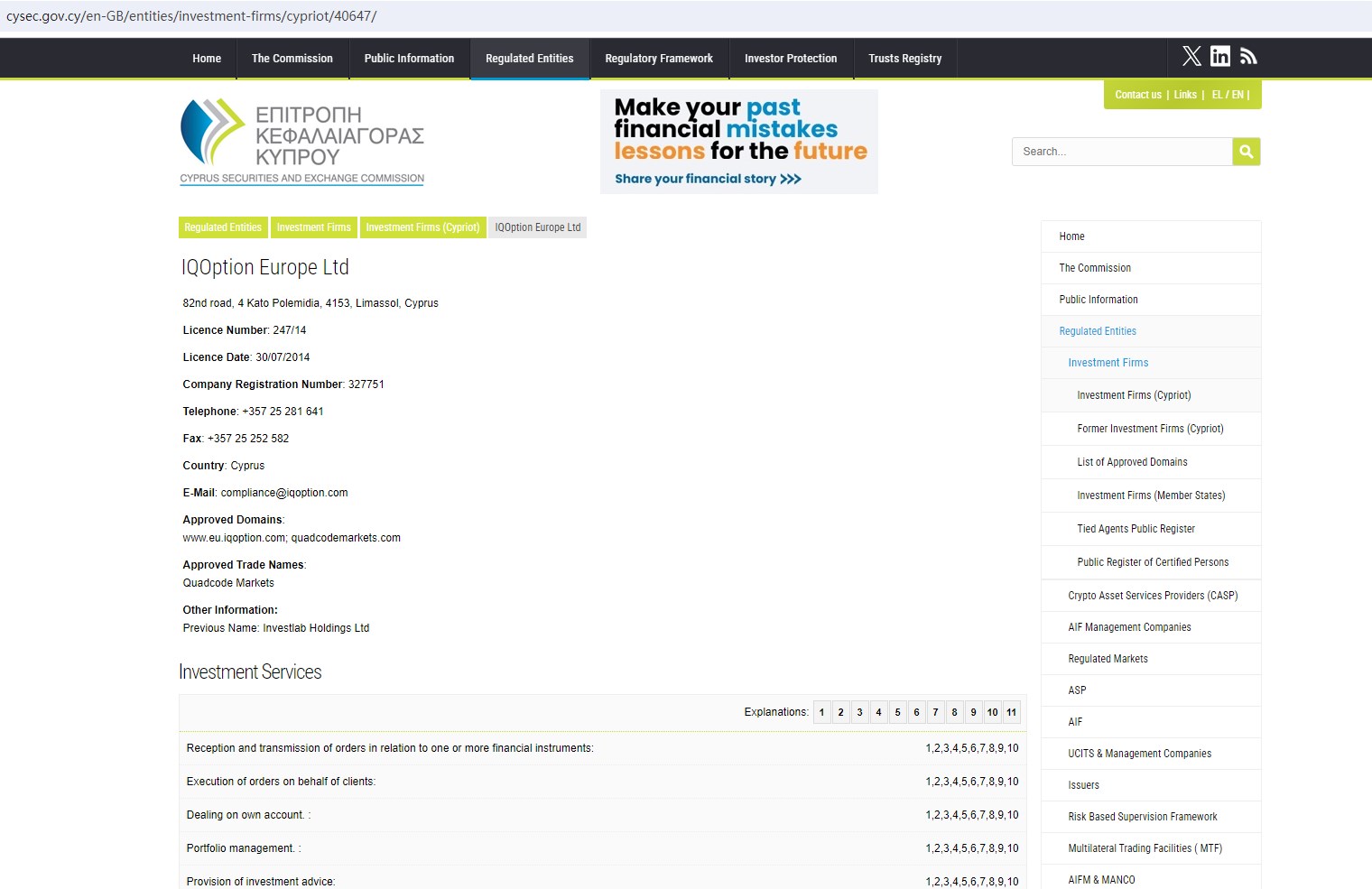 Upon investigation, the CIF license 247/14 should be the Cyprus Securities and Exchange Commission (CySEC). The company with the license 247/14 is IQOption Europe Ltd(www.eu.iqoption.com; quadcodemarkets.com) in the CySEC. Apparently Forex Genie Pro is not regulated by the CySEC.