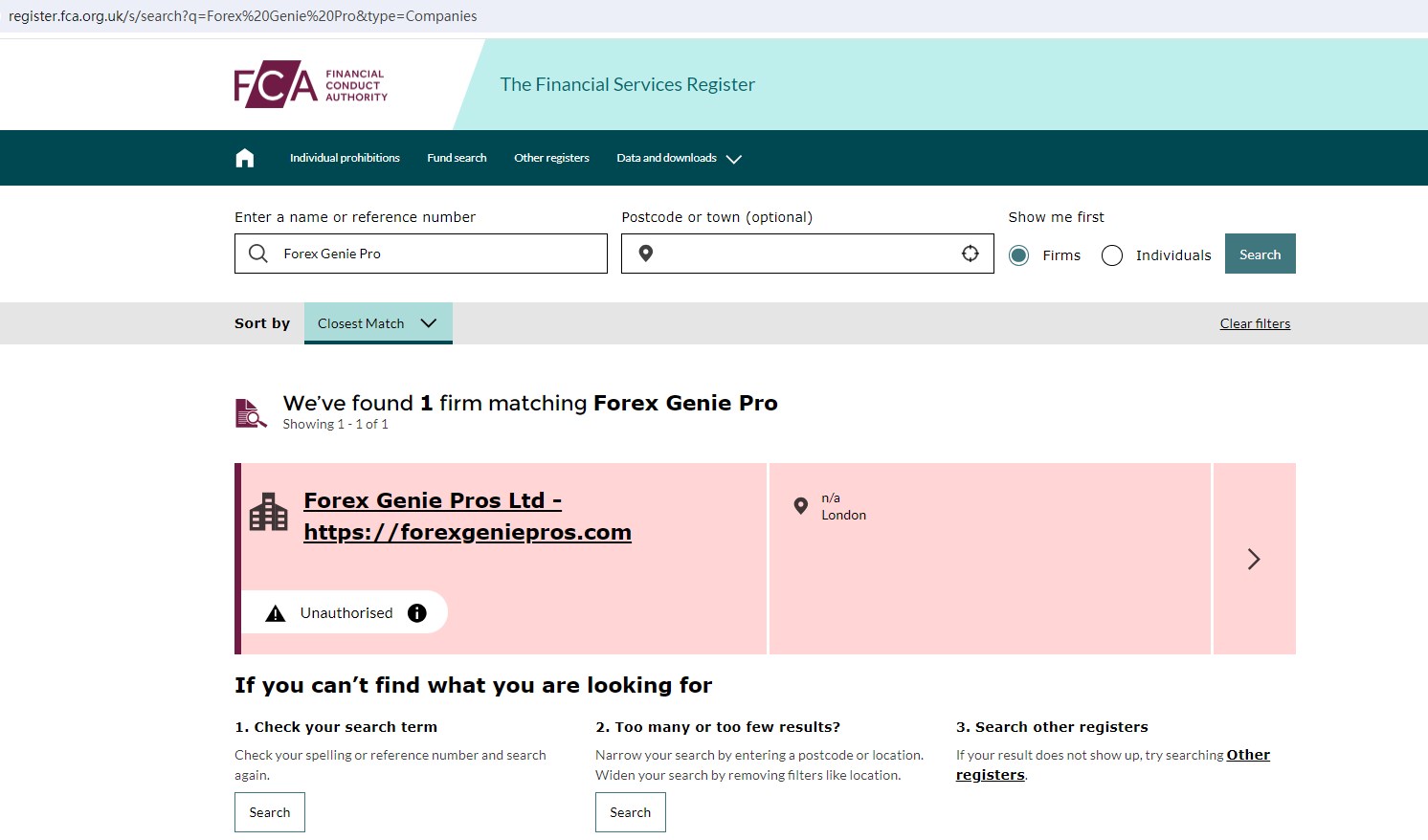 Forex Genie Pro is also not authorized and regulated by the United Kingdom Financial Conduct Authority (FCA), the U.S. National Futures Association (NFA) and the China Securities Regulatory Commission (CSRC).