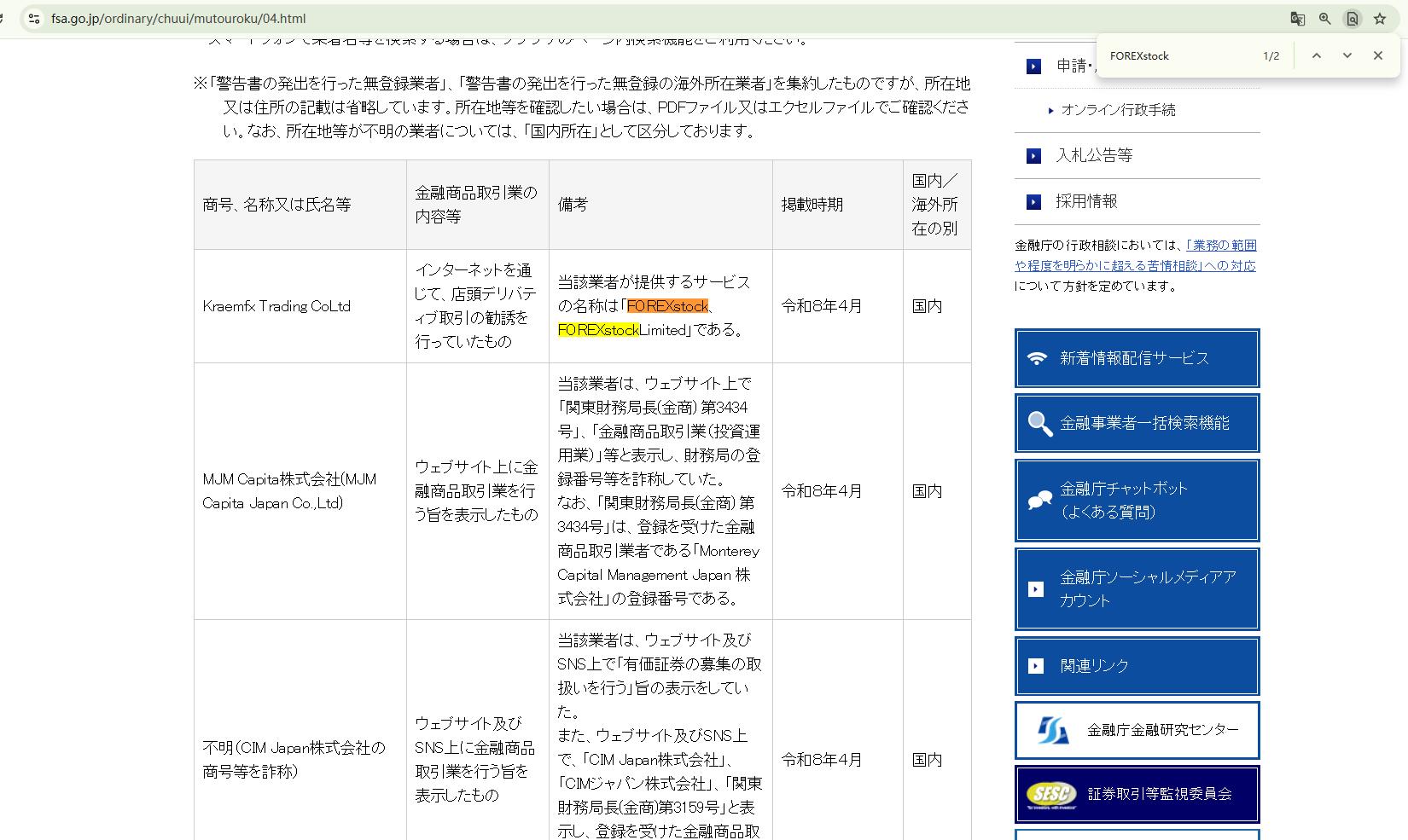 On Apr 17, 2026, the Financial Services Agency(FSA) in Japan issued a warning against FOREXstock, believing this company might be providing financial services or products without proper authorization in Japan. https://www.fsa.go.jp/ordinary/chuui/mutouroku/04.html