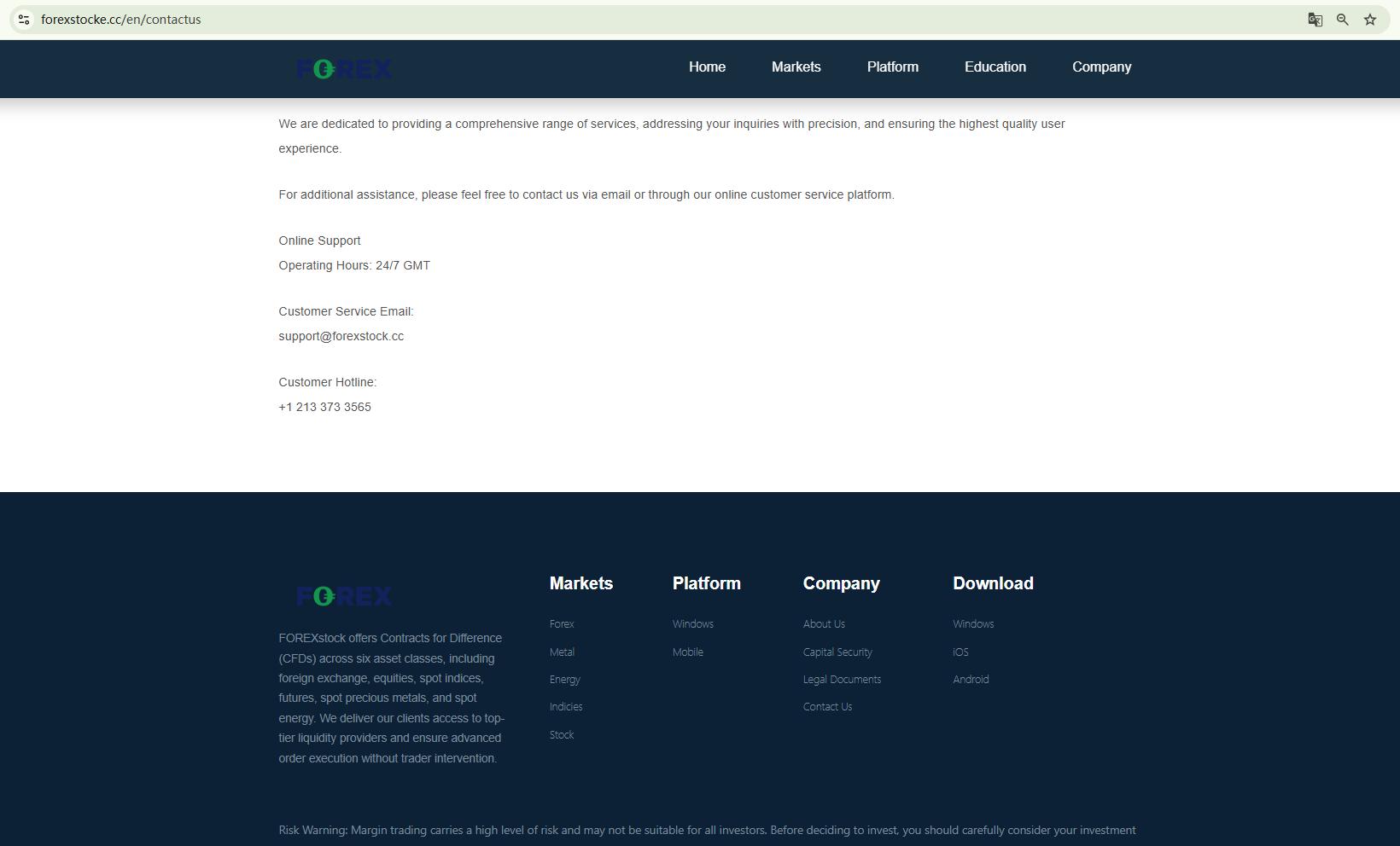 FOREXstock’s website provides no regulatory disclosures and fails to list basic corporate information, such as its legal entity name, registered address, jurisdiction of incorporation, or contact details. This lack of transparency makes it impossible to verify whether the platform holds any valid license or operates under legitimate oversight.