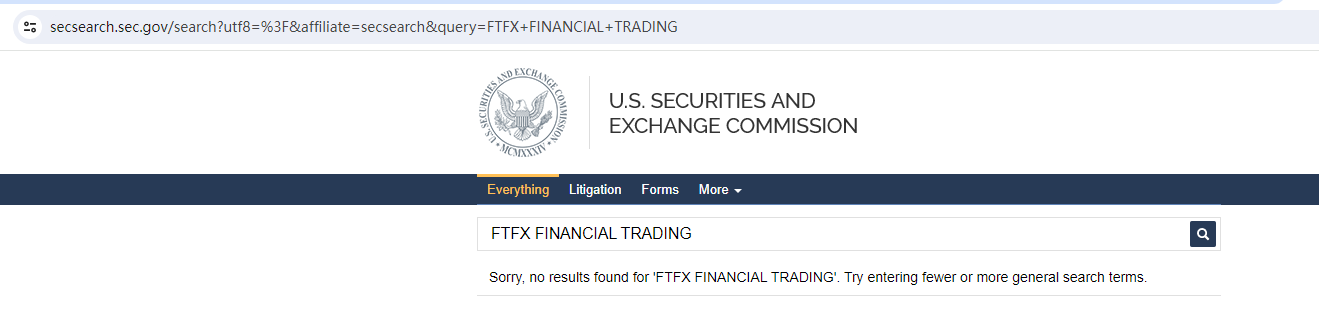 FTFX Financial Trading claims to be regulated by the U.S. Securities and Exchange Commission (SEC), we searched the SEC but found no matching results.