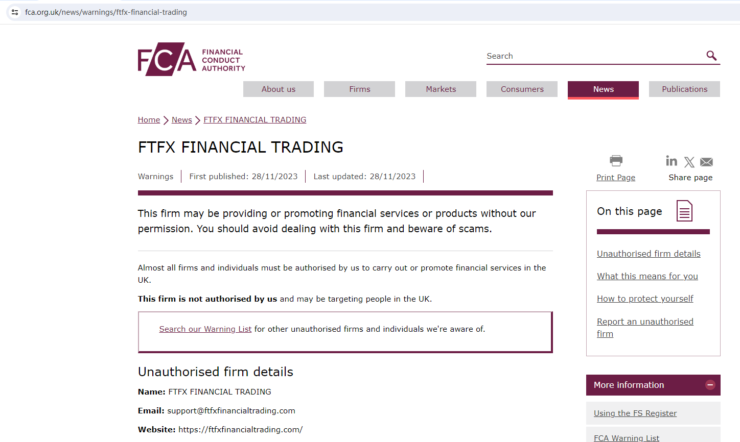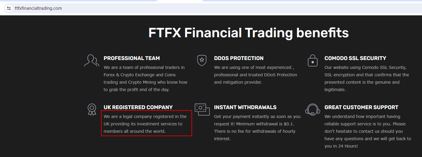 FTFX Financial Trading claims to be registered in the UK, but the United Kingdom Financial Conduct Authority (UK FCA) issued a warning that FTFX Financial Trading was providing finacial services or products without authorisation.