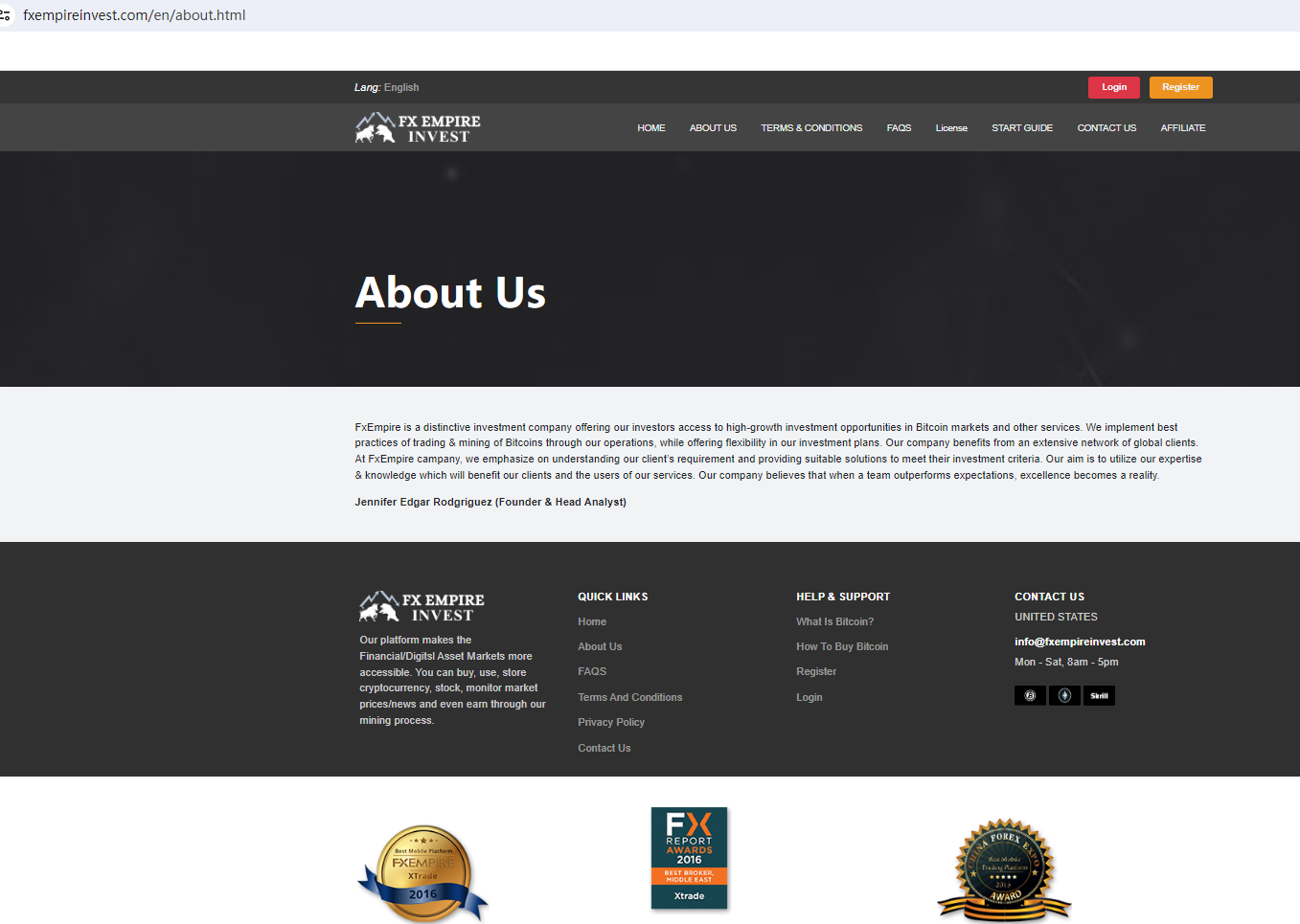 FX EMPIRE (aka FX EMPIRE INVEST) appears to be a scam.