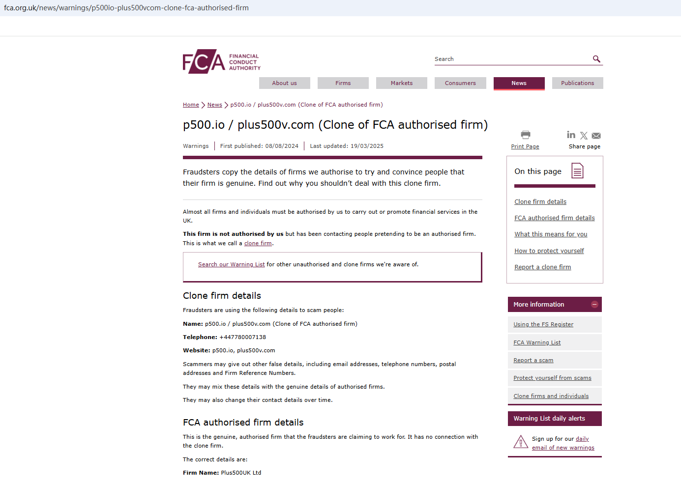 Fx Plus500 is still in business, continuing its fraudulent activities to steal money. Therefore, the FCA updates its warning against Fx Plus500, cautioning the public to stay away from this unauthorized firm. https://www.fca.org.uk/news/warnings/p500io-plus500vcom-clone-fca-authorised-firm