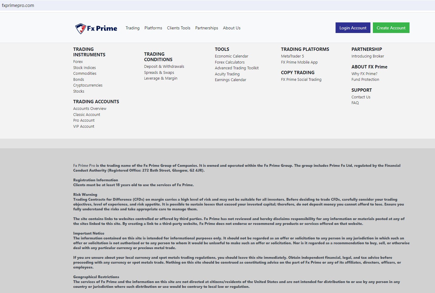 Fx Prime Pro claims to be the trading name of the Fx Prime Group of Companies. It is owned and operated within the Fx Prime Group. The group includes Prime Fx Ltd, regulated by the Financial Conduct Authority (FCA) in the UK, offering wide range of financial services, including Forex, Stock Indices, Commodities, Bonds, Cryptocurrencies, Stocks and more instruments in global markets.