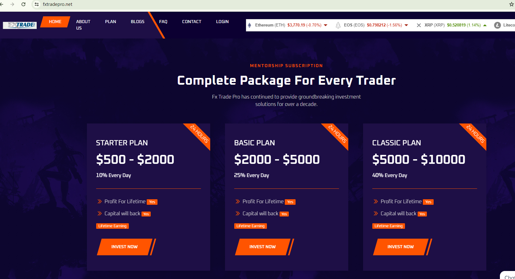 In essence, Fx Trade Pro is not regulated by any governing body. Entrusting it with investors' funds is highly risky, as there are no legal protections in place to safeguard the funds.