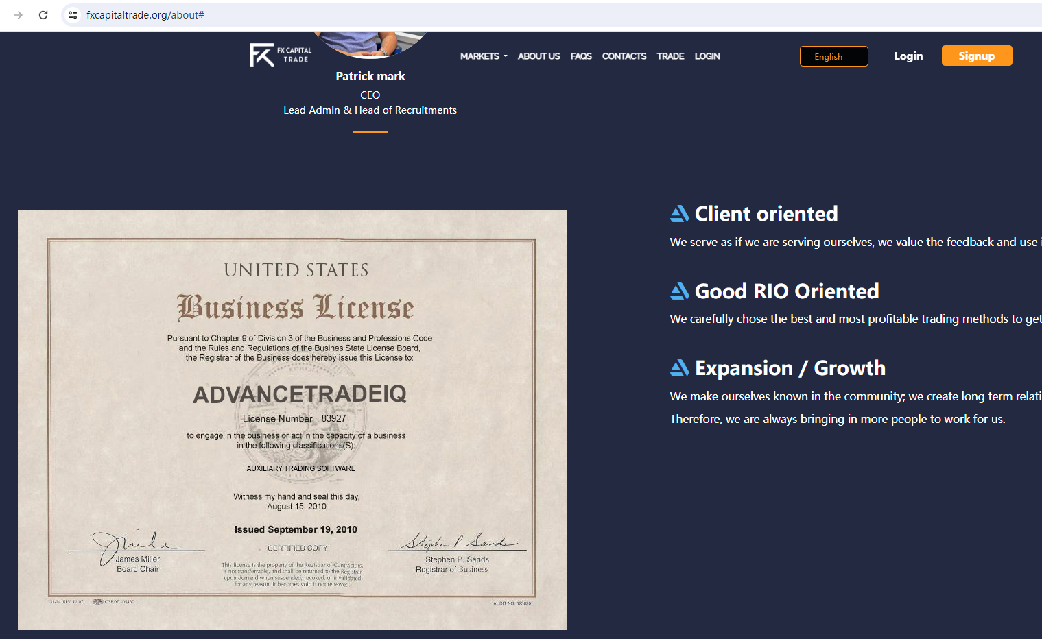 Fxcapitaltrade claims to be regulated in the USA, we searched the National Futures Association (NFA) by the company name Fxcapitaltrade/ADVANCETRADEIQ but found no matching results.The truth is that Fxcapitaltrade is not under valid regulation by any regulators to do forex. Investors' funds in this broker are unsafe and cannot be protected by any law.Fxcapitaltrade is a scam.